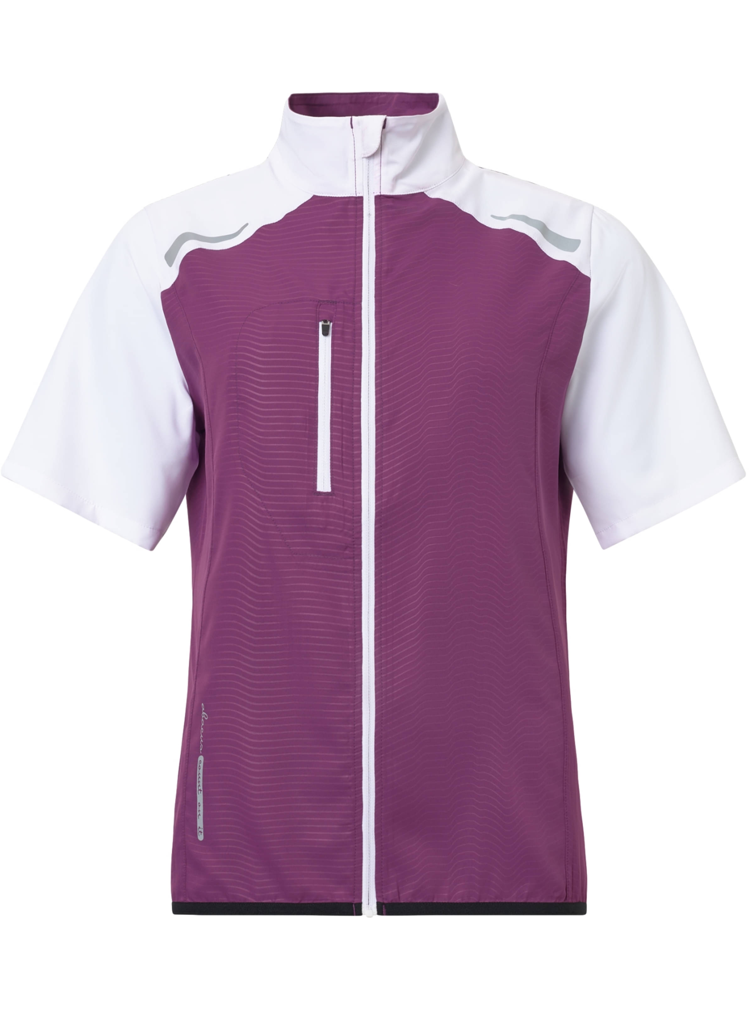 Das Abacus Windshirt Lanark Stretch besteht aus einem dünnen, winddichten Stoff mit mechanischem Stretch, der aus recyceltem Polyester gefertigt ist. Der Hauptteil ist komplett mit einem transparenten Muster bedruckt, während die Ärmel und Schultern in einem einfarbigen Kontraststoff gehalten sind. Ein durchgehender Reißverschluss an der Vorderseite und eine praktische Brusttasche mit Zipper bieten Funktionalität und Stil. Elastische Abschlüsse am Saum sorgen für eine bequeme Passform. Die Abacus-Logos befinden sich am unteren rechten Saum und mittig am Rücken.
