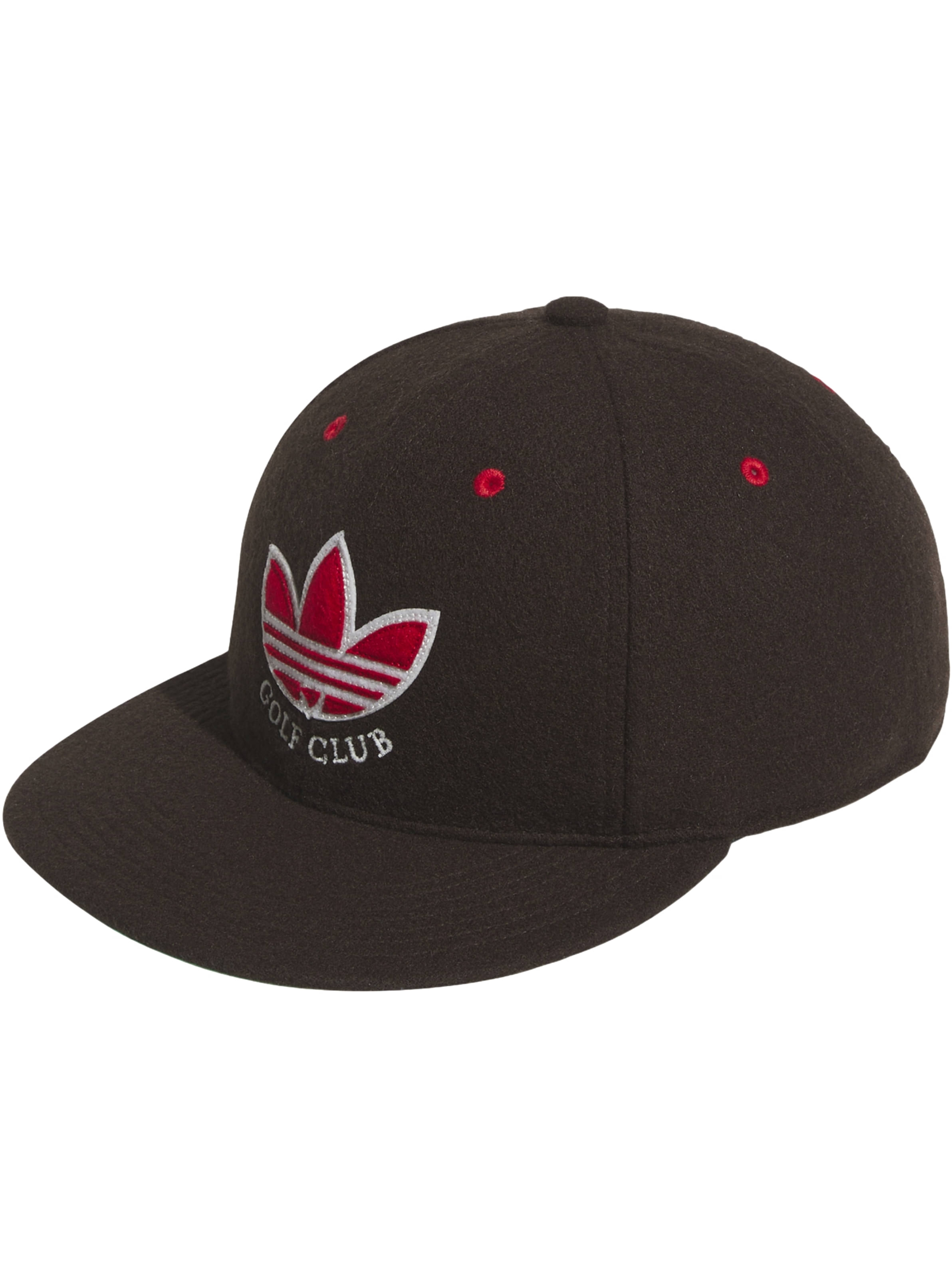 Golfplatz. Mit ihrer flachen Krempe, dem klassischen Trefoil-Logo und