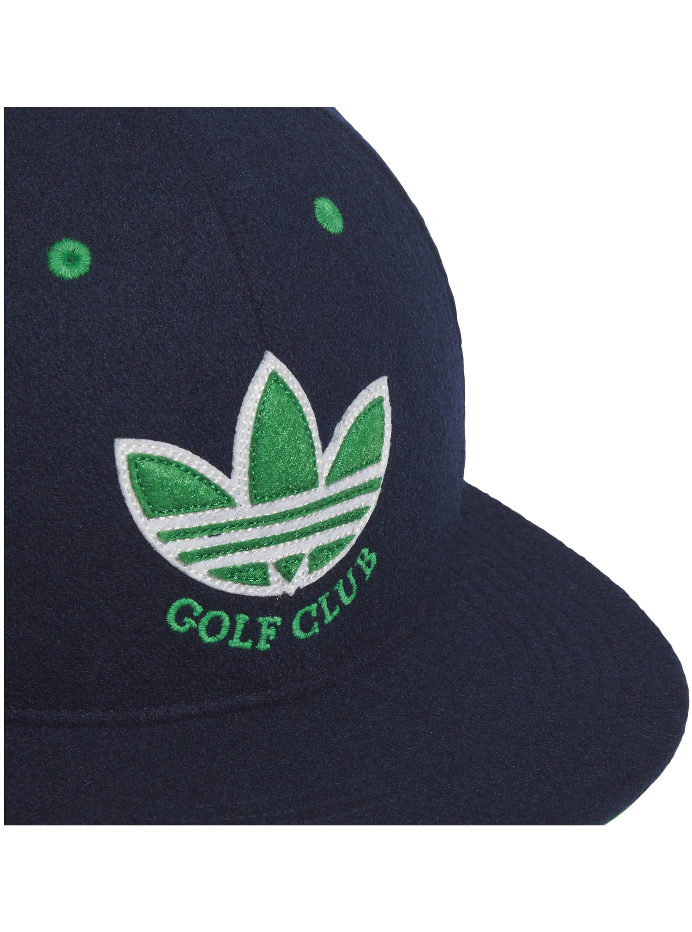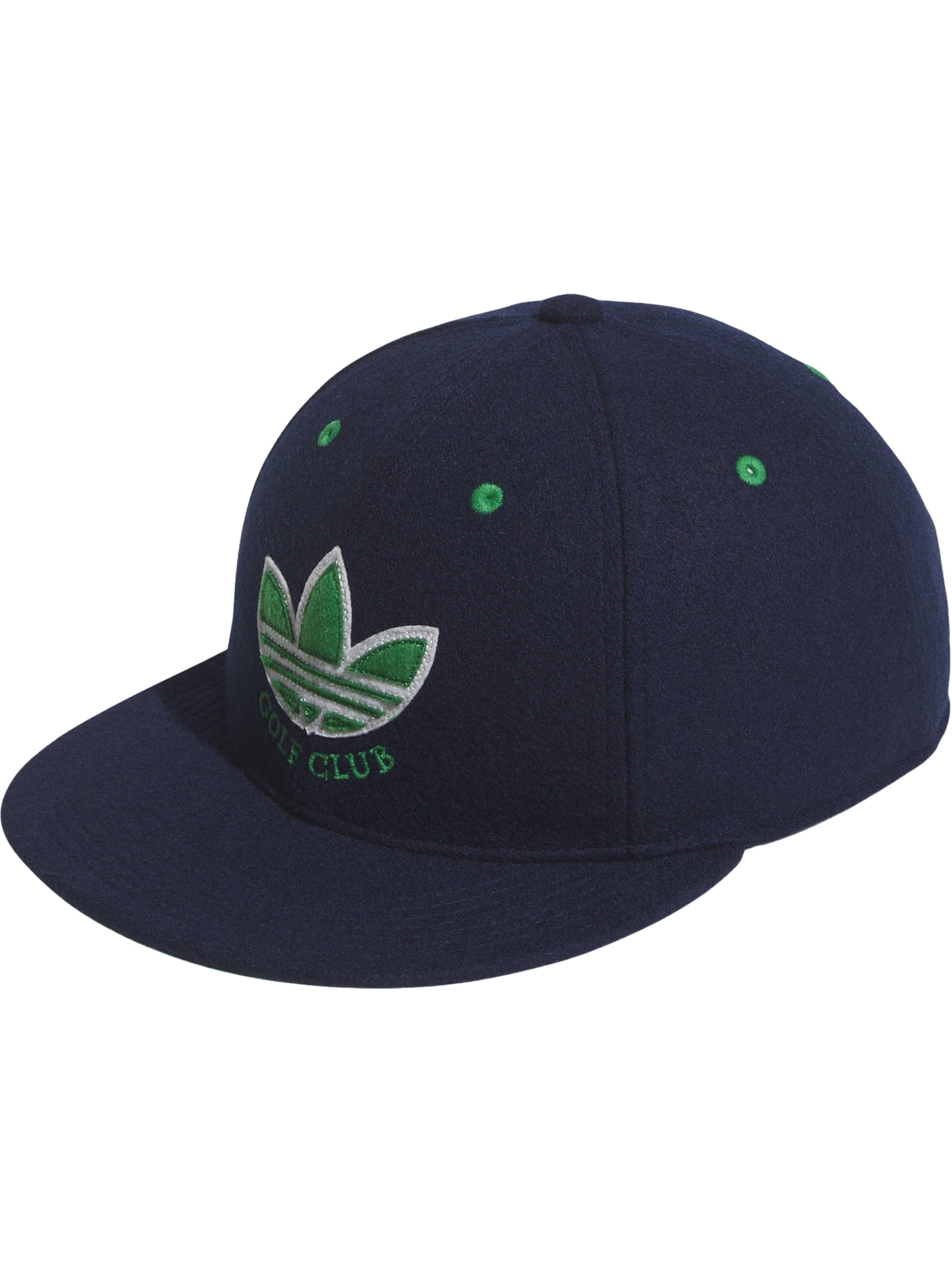 Golfplatz. Mit ihrer flachen Krempe, dem klassischen Trefoil-Logo und