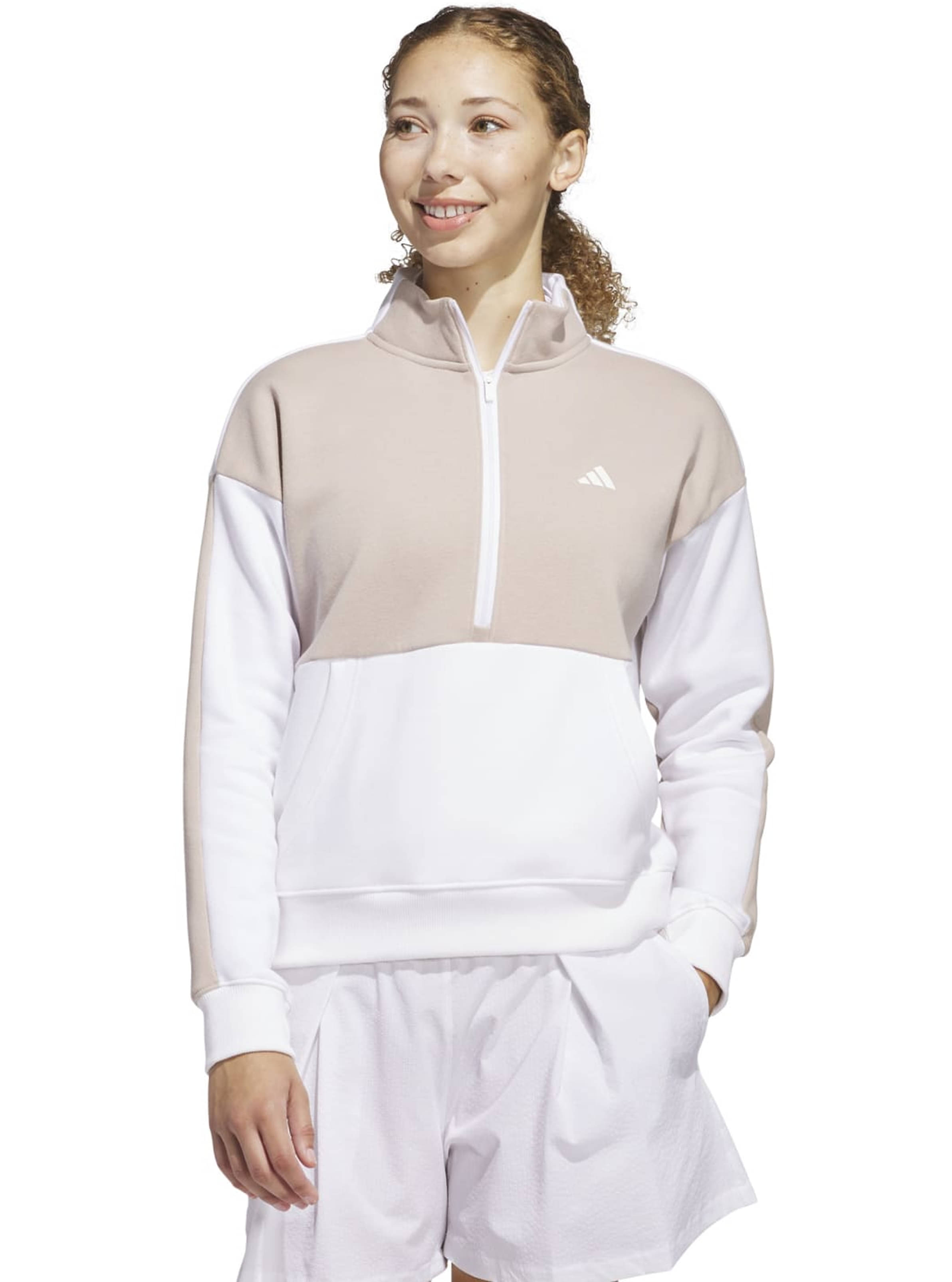 adidas Pullover Quarter-Zip, weiß/taupe