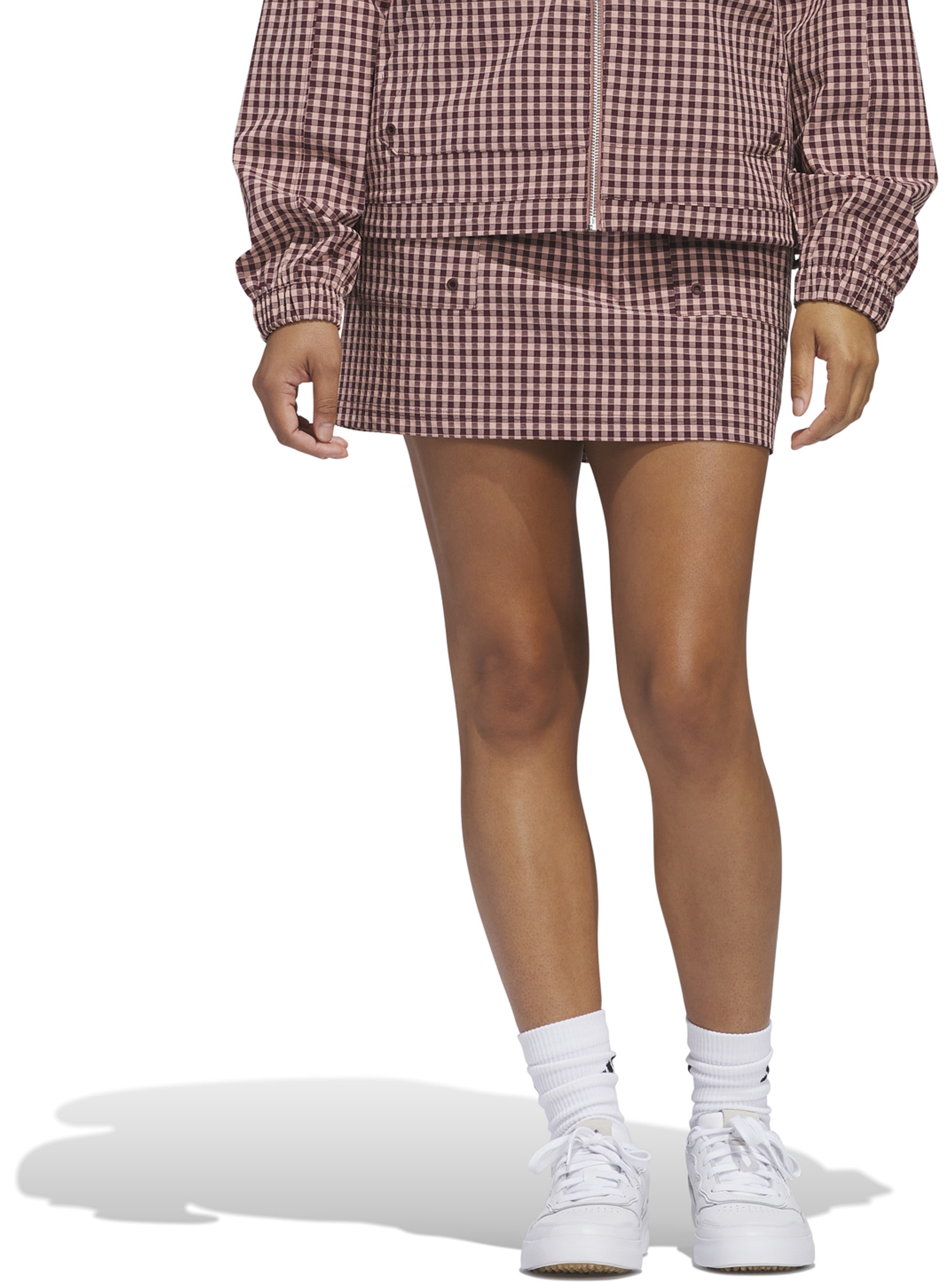 Produktbeschreibung: Ein klassischer Look auf dem Golfplatz mit einem Twist. Der Adidas Ultimate365 Gingham Skort bietet einen frischen Ansatz für den Golfstil mit seinem Gingham-Muster. Hergestellt aus recyceltem Polyester und Elasthan, ist er für Komfort und uneingeschränkte Bewegungsfreiheit während Ihrer Runde konzipiert. Die integrierten Untershorts bieten zusätzlichen Schutz beim Schwung, und der mittelhohe Bund sorgt für eine bequeme Passform. Teilweise aus recycelten Materialien hergestellt.