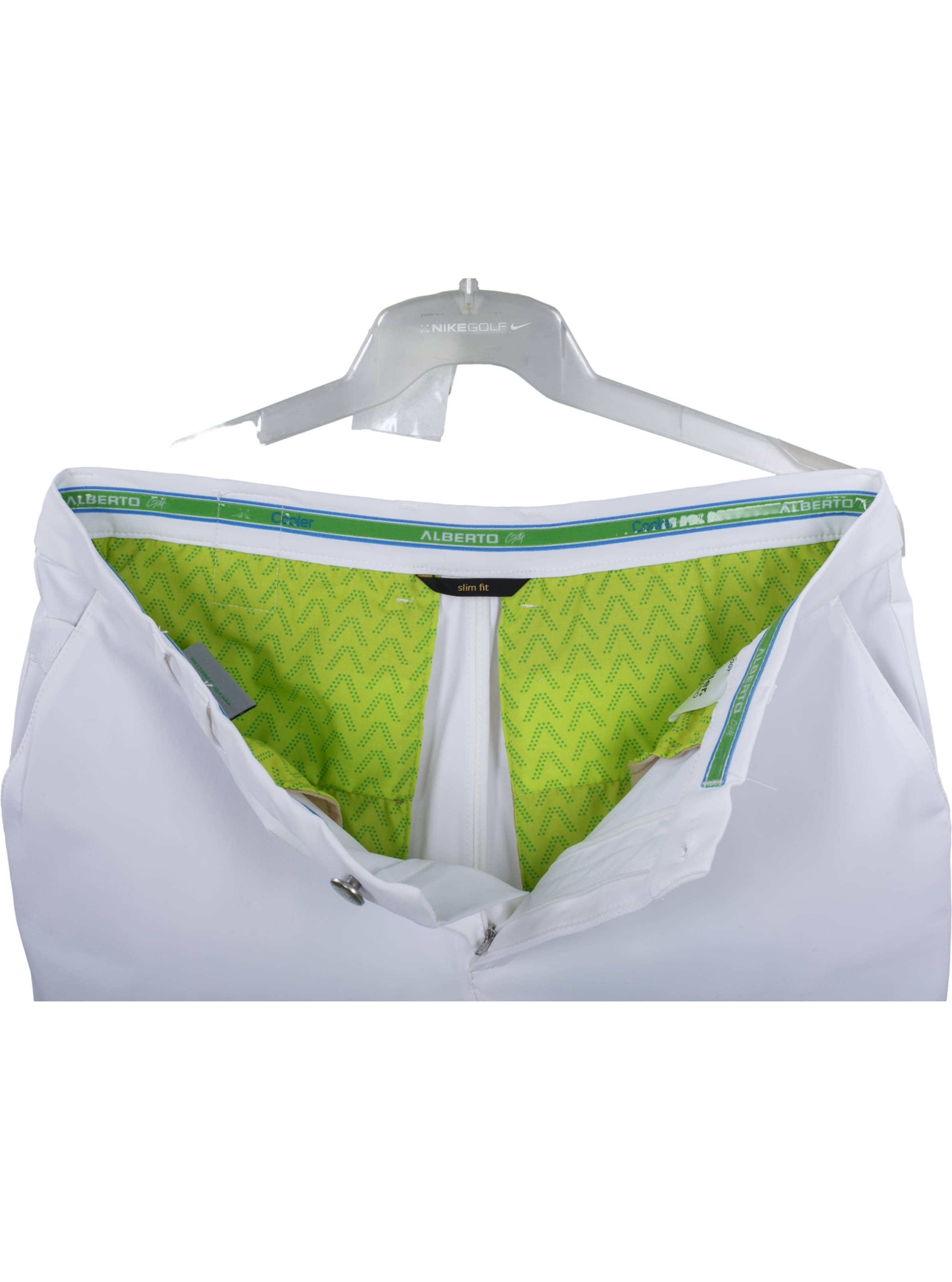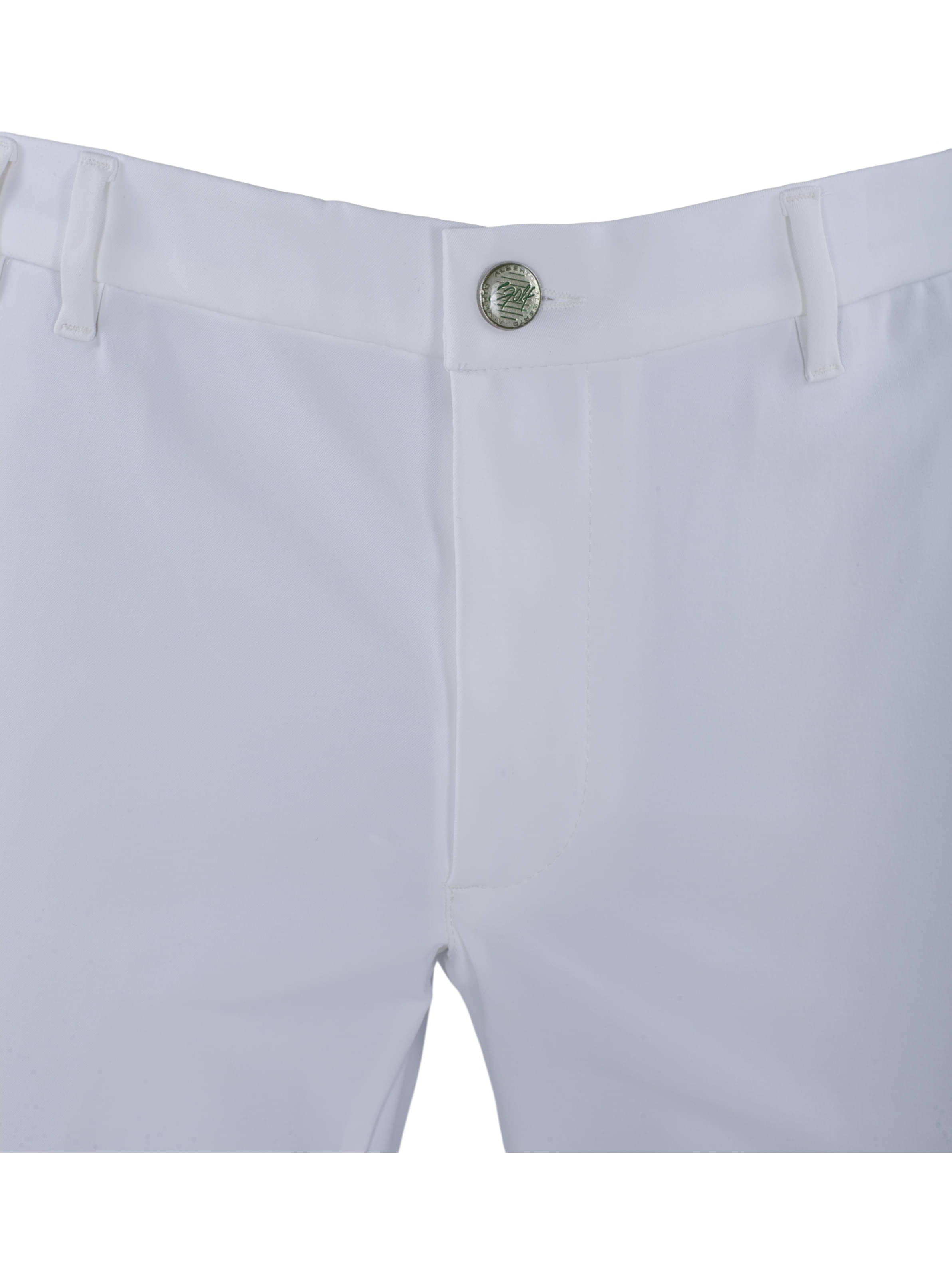 Details Silikonstreifen im Bund und in rechter Gesäßtasche (Stopper-Funktion), Alberto-Aufnäher über rechter Gesäßtasche, Alberto-Logostick vorne