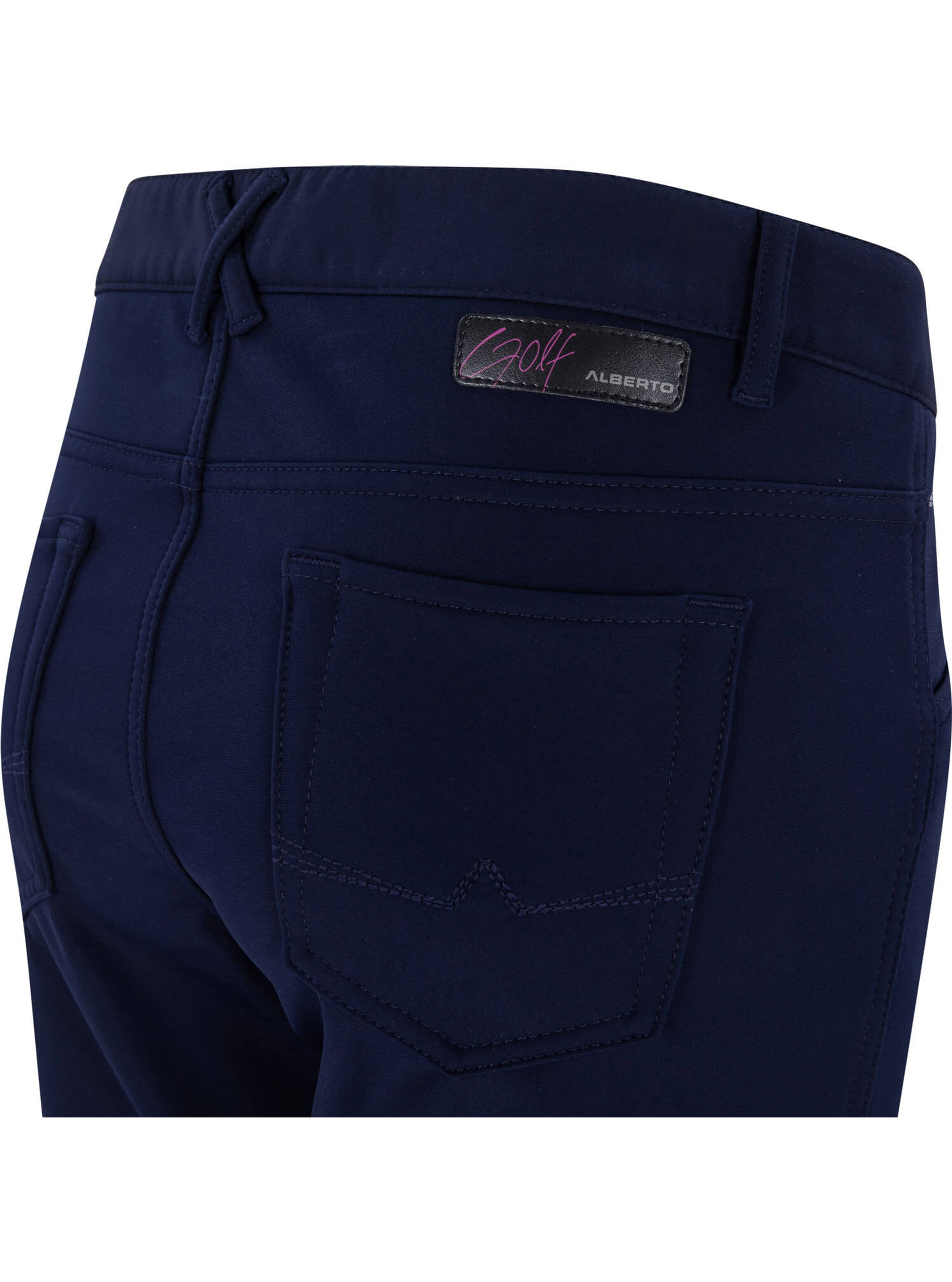 • Patch mit Alberto Golf-Schriftzug über der rechten Gesäßtasche