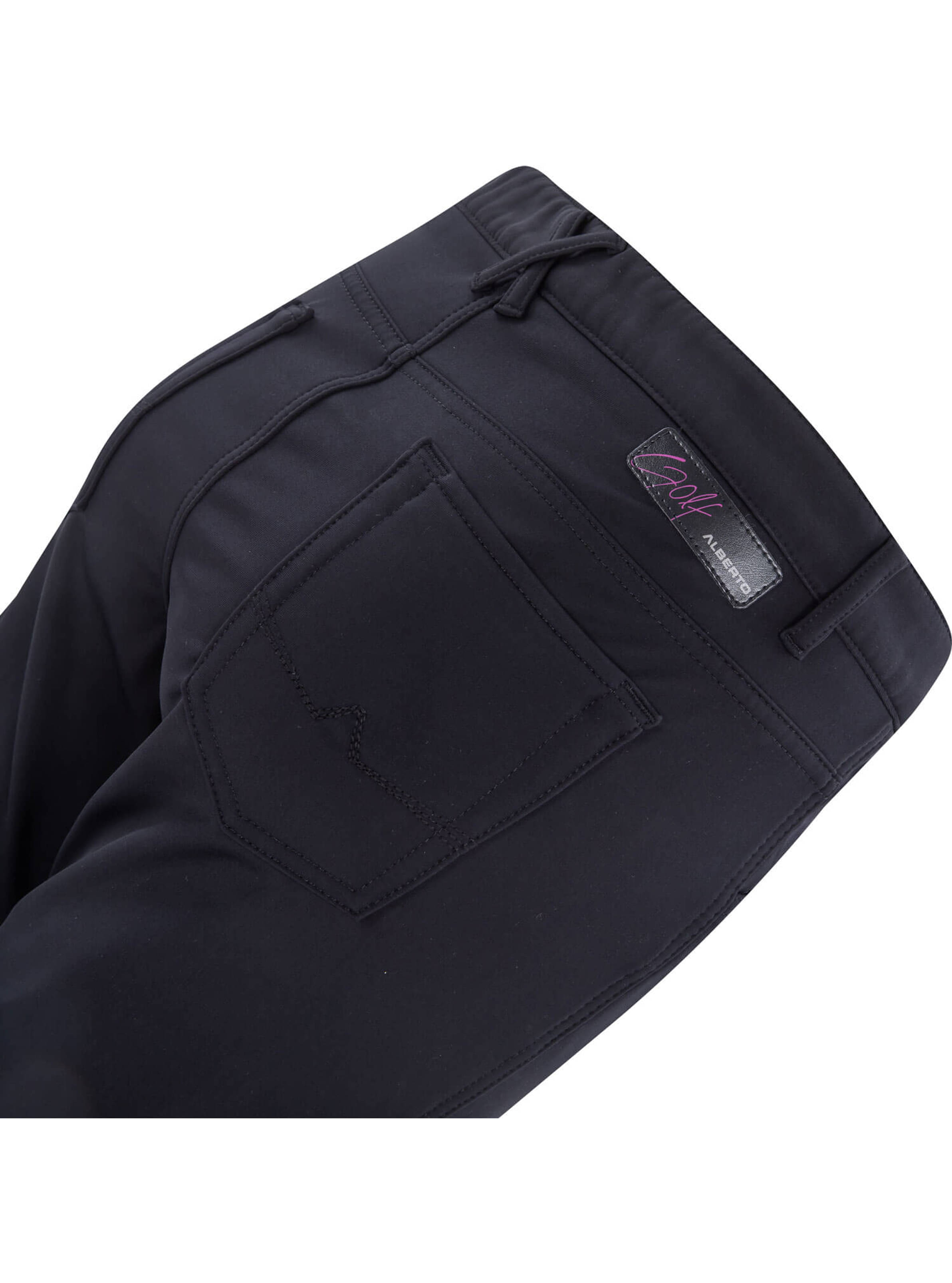 • Patch mit Alberto Golf-Schriftzug über der rechten Gesäßtasche