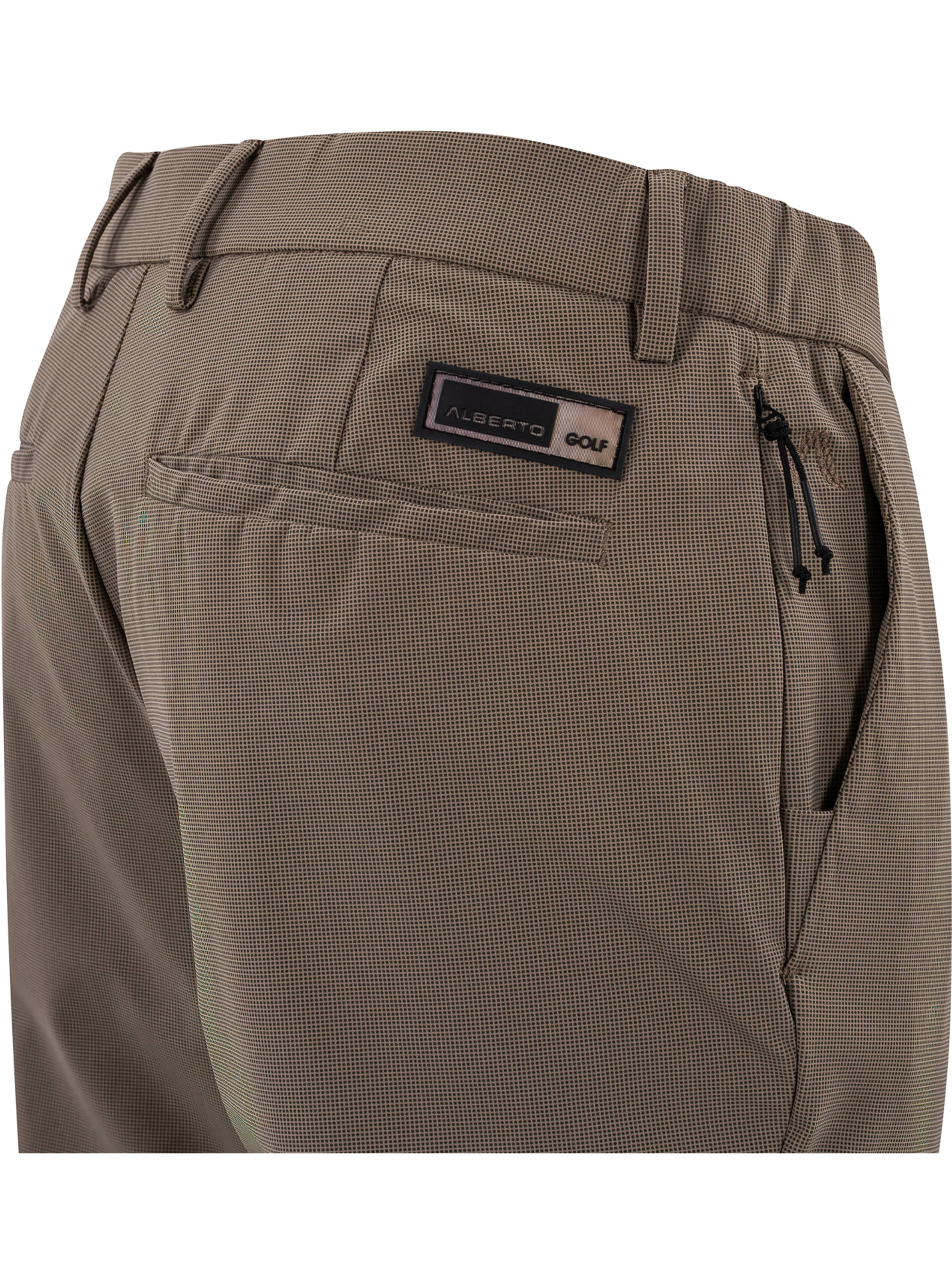 Die Alberto Golfhose Rookie 7 im innovativen Stoff Revolutional® Print WR vereint sportliche Funktionalität mit einem modernen Look. Der Regular Fit mit geradem Beinverlauf und regulärer Bundhöhe sorgt für einen bequemen Sitz – ideal für lange Tage auf dem Golfplatz.
