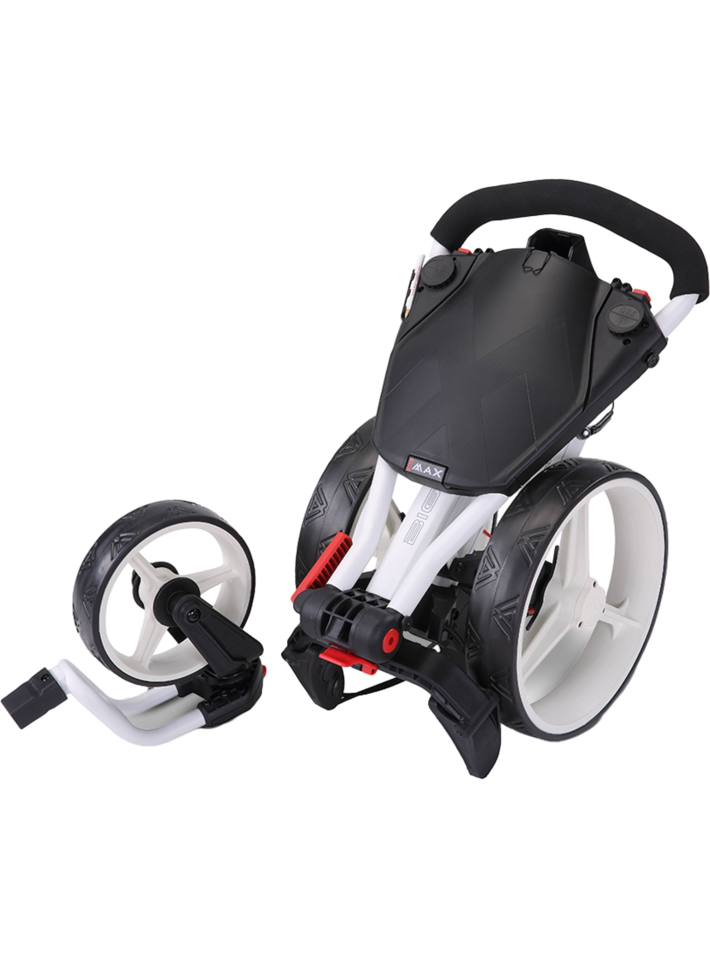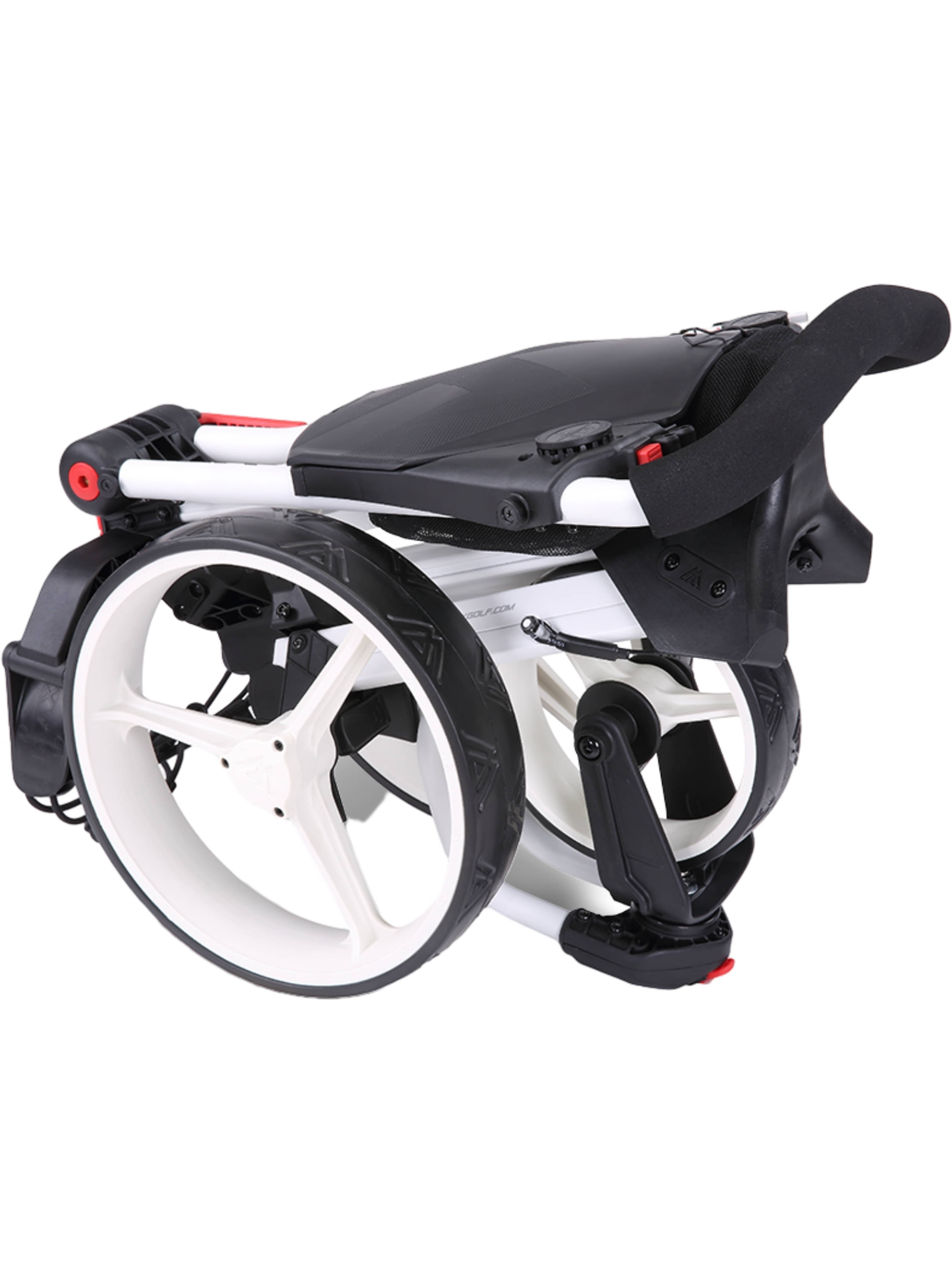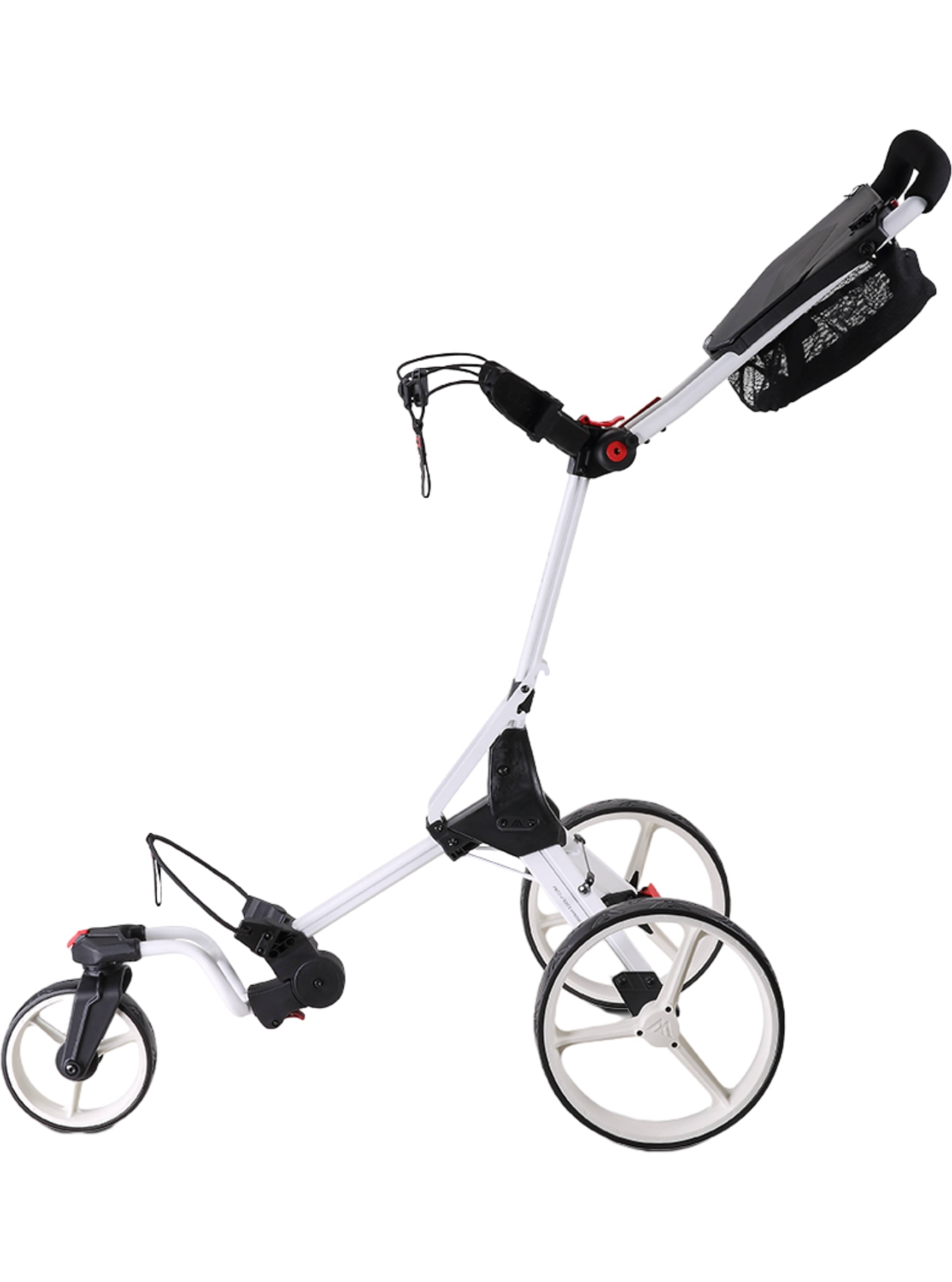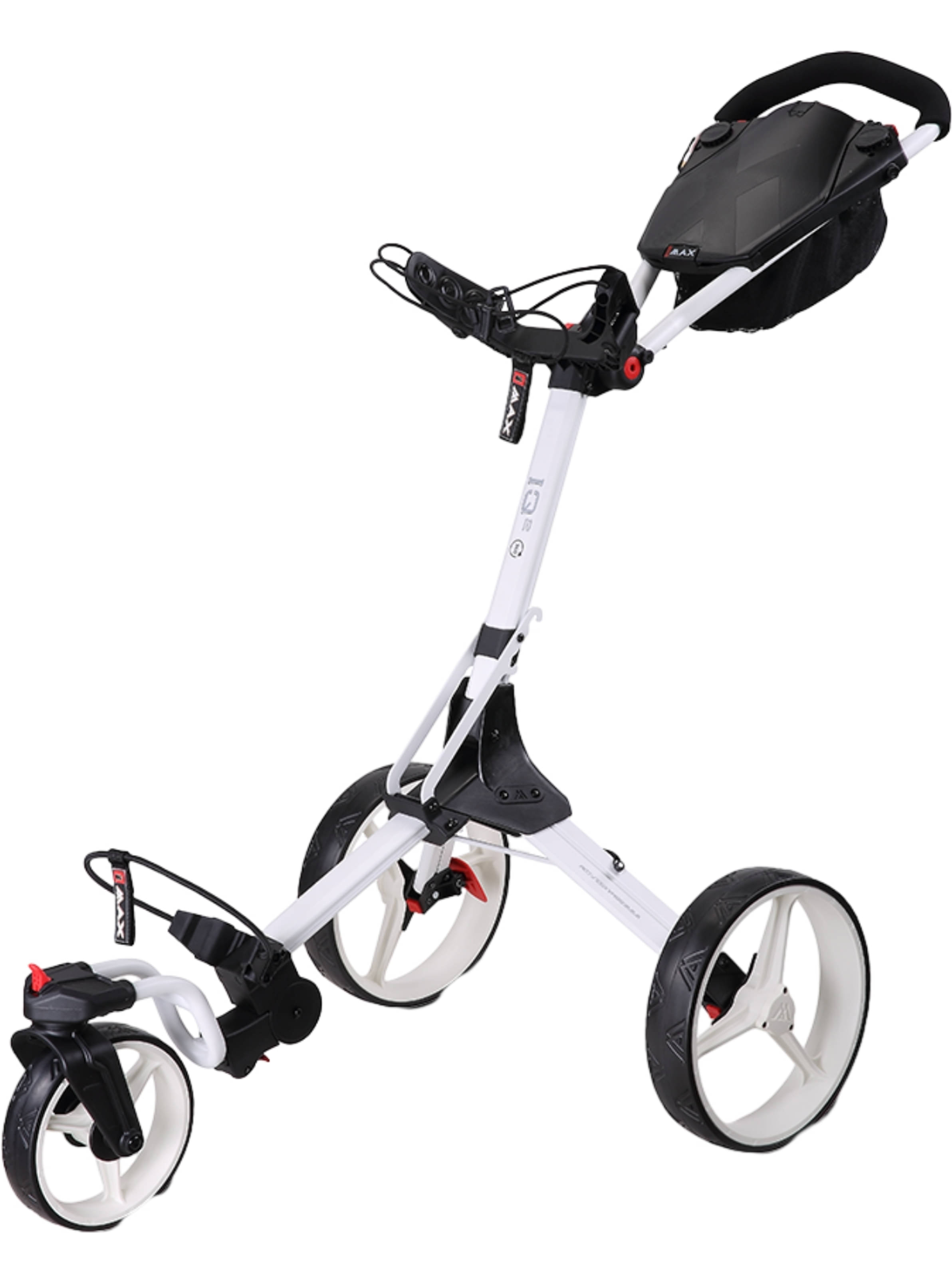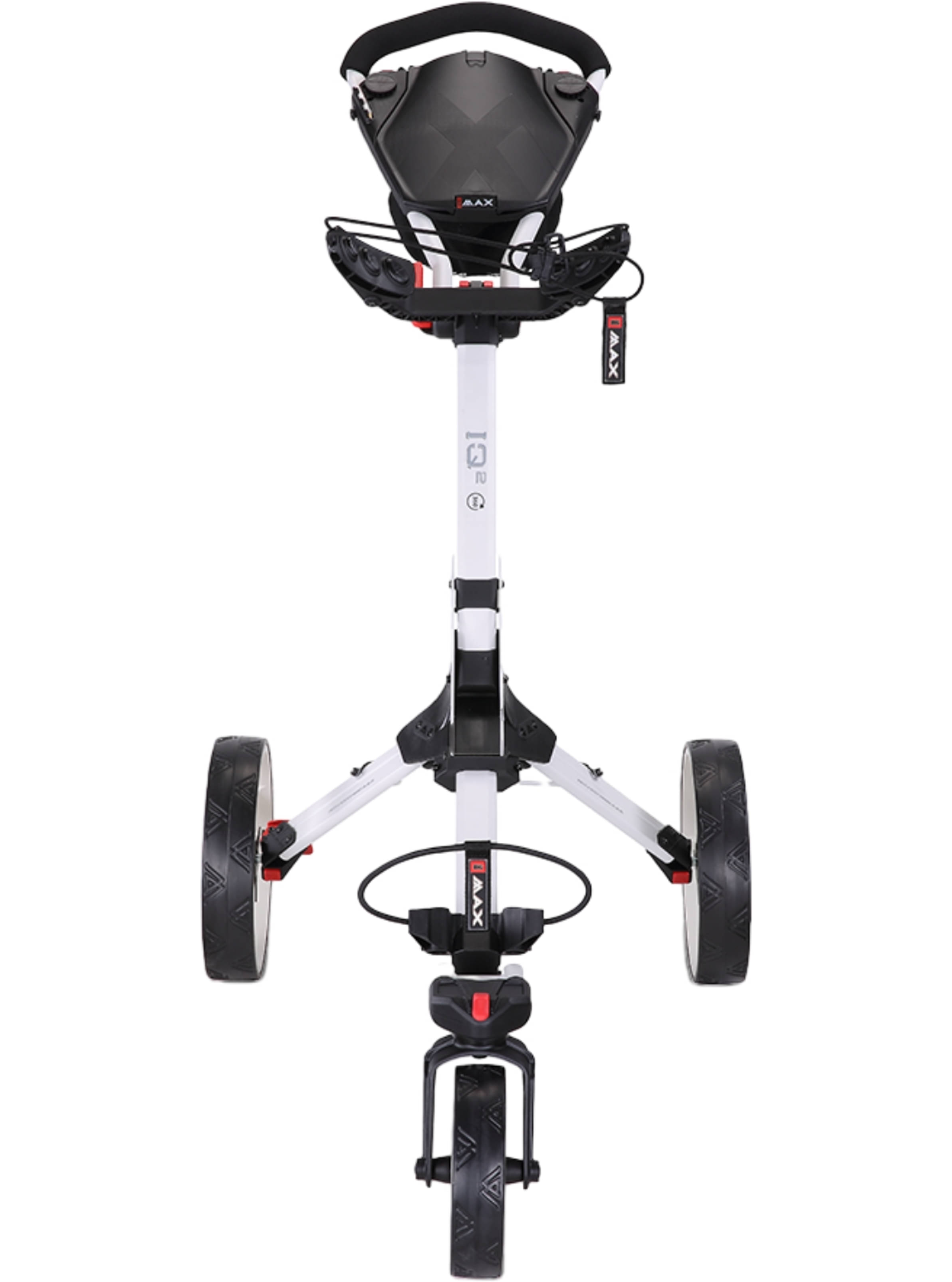Mit seinem um 360 Grad drehbaren Vorderrad lässt sich der IQ2 360 auf kleinstem Raum extrem leicht manövrieren. Das macht ihn zu einem besonders praktischen Begleiter auf dem Platz. Zusammengeklappt ist er so kompakt wie ein kleiner Koffer und nimmt daher nur wenig Stauraum in Anspruch. Wenn es noch enger wird, ist auch das Vorderrad abnehmbar.