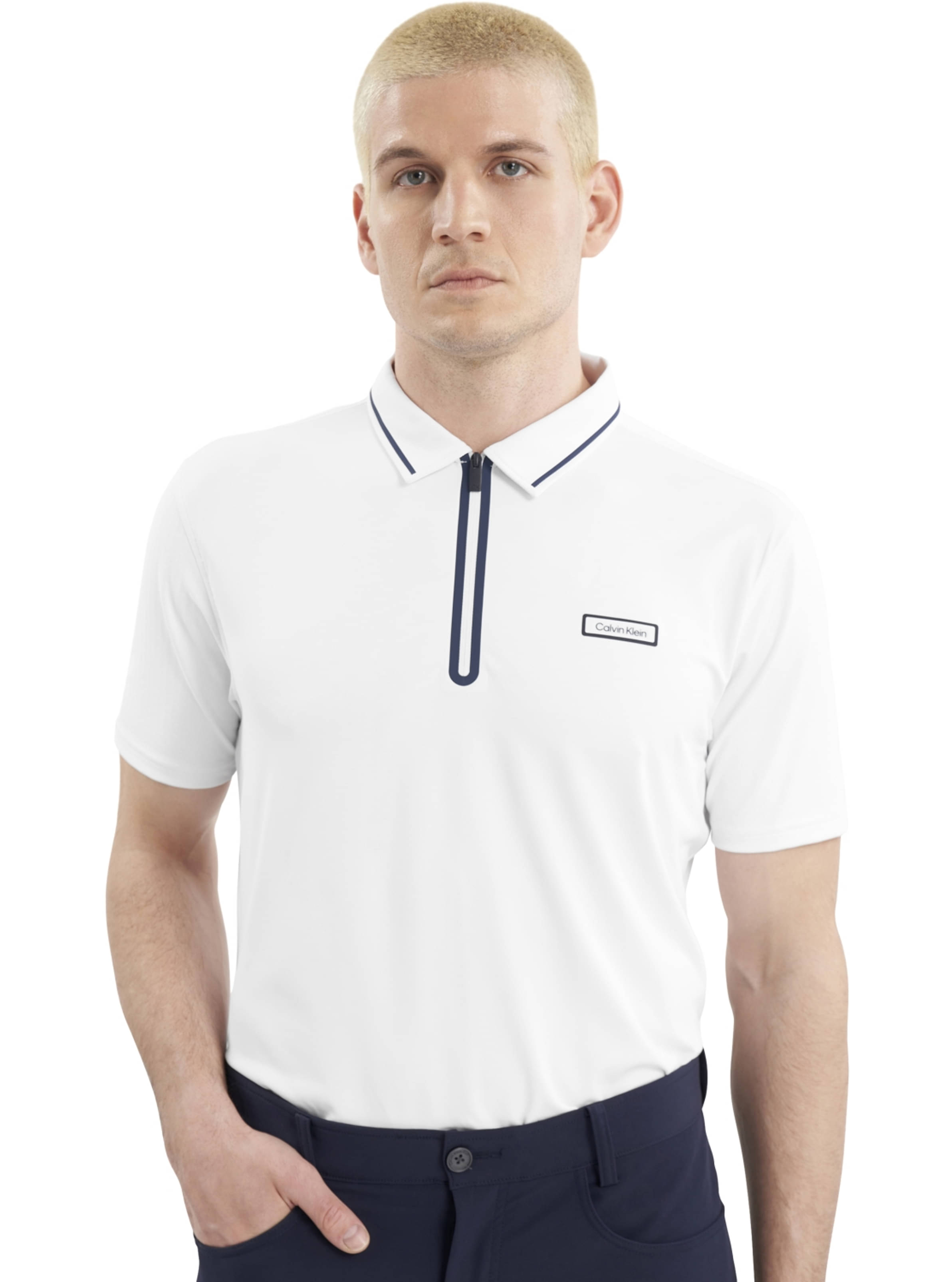 Das Calvin Klein Belmont Polo kombiniert erstklassige Funktionalität mit einem auffälligen, modernen Design. Dieses Performance-Polo besticht durch innovative Details wie den kontrastfarbenen Plastisol-Zip-Einsatz und die CK-Logos an den Ärmeln, die für einen einzigartigen Look sorgen. Hergestellt aus einem superleichten, dehnbaren Stoff, bietet es optimale Bewegungsfreiheit und ein angenehmes Tragegefühl, ideal für den Golfplatz.