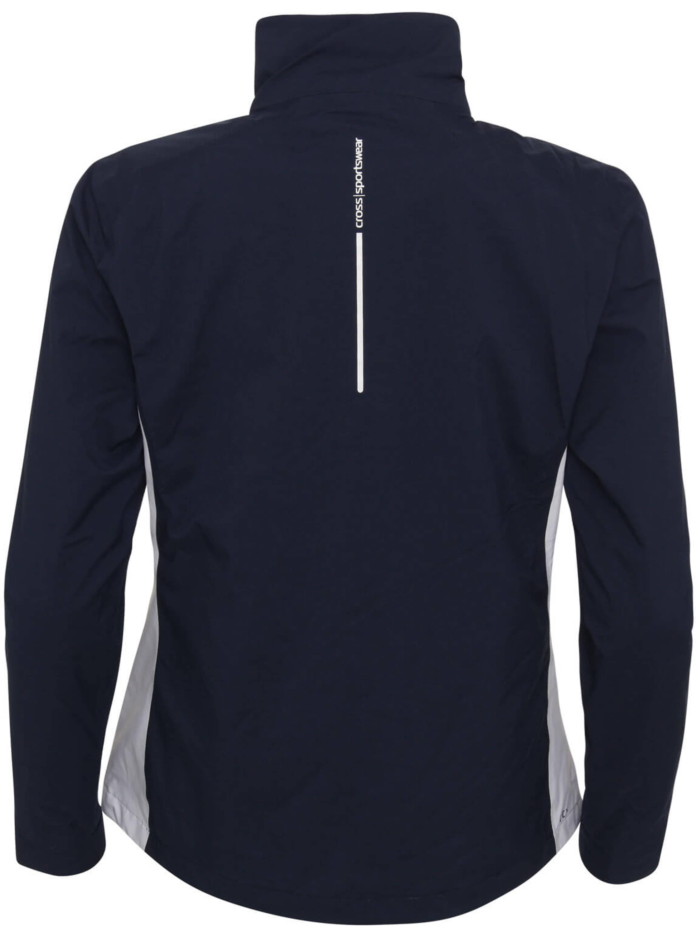 Cross-Logo auf dem linken Ärmel, Cross Sportswear-Schriftzug im Nacken, reflektierender FTX-Schriftzug über dem Saum (seitlich links), Seiteneinsätze in Kontrastfarbe, Kordelzug im Saum, verstellbare Ärmelbündchen (Klettverschluss), Kragen innen weich angeraut, atmungsaktives Netz-Innenfutter