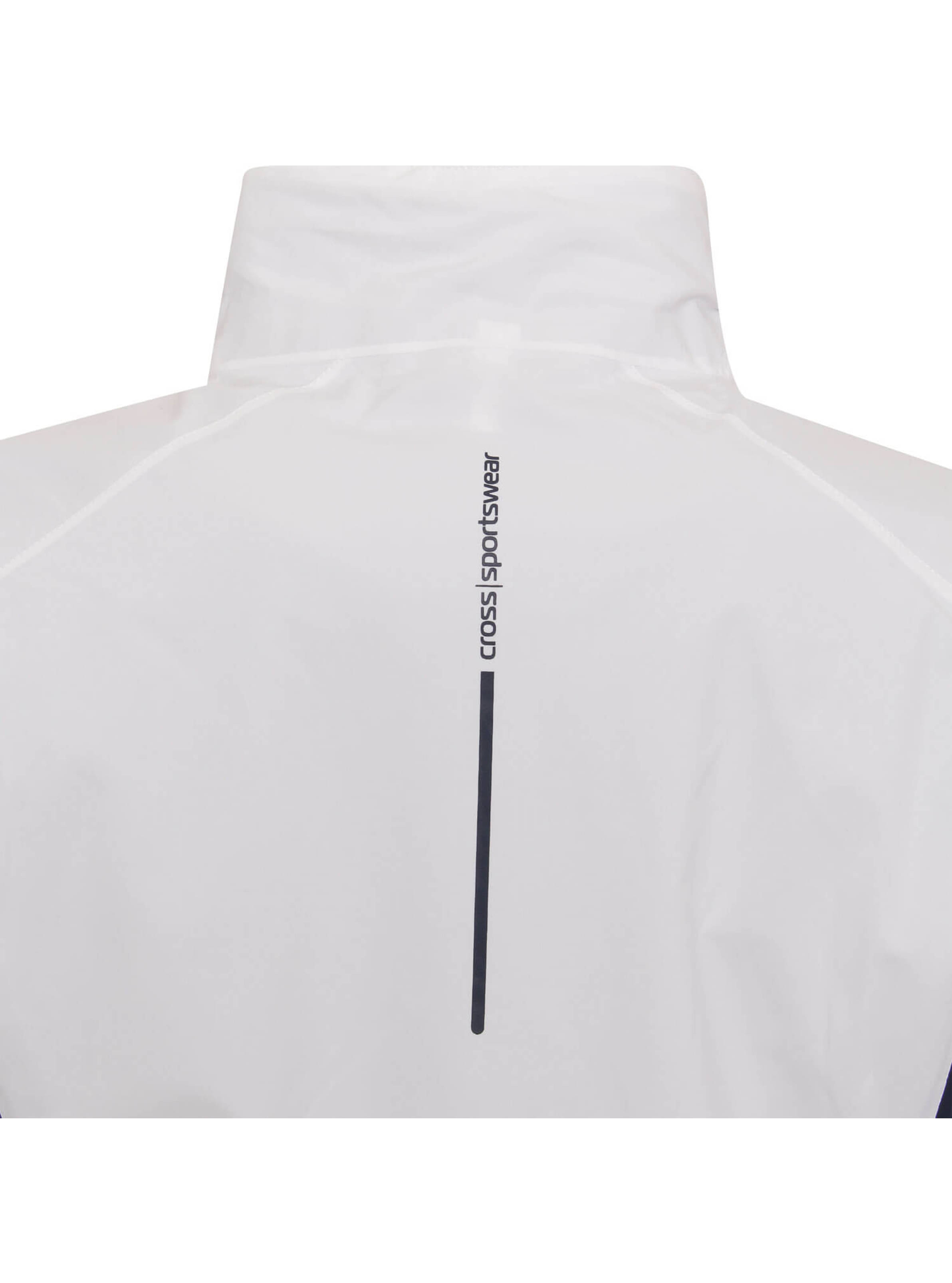 Cross-Logo auf dem linken Ärmel, Cross Sportswear-Schriftzug im Nacken, reflektierender FTX-Schriftzug über dem Saum (seitlich links), Seiteneinsätze in Kontrastfarbe, Kordelzug im Saum, verstellbare Ärmelbündchen (Klettverschluss), Kragen innen weich angeraut, atmungsaktives Netz-Innenfutter