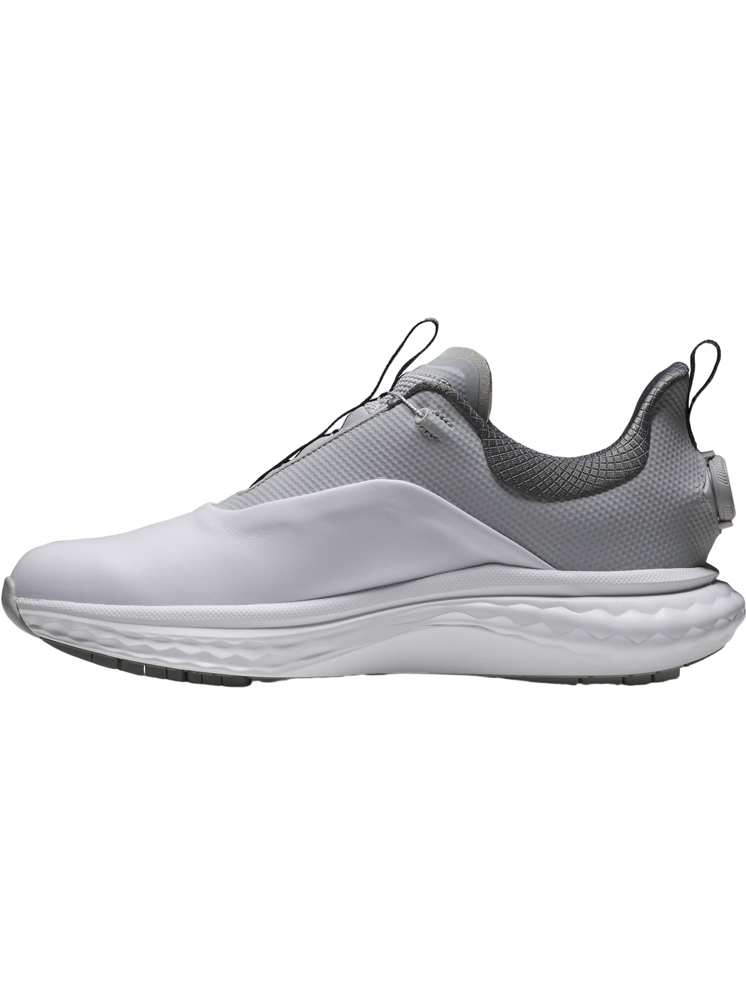 Seit 2006 arbeiten FJ und BOA® Technology gemeinsam an einer einzigartigen, an der Ferse montierten Lösung – ein Wendepunkt in Sachen Passform. Durch die Integration des BOA®-Drehverschlusses in der Ferse wurde eine „Down-and-Back“-Passform entwickelt, die Vorfuß und Ferse umfasst und für Präzision, Stabilität und Kraft sorgt.