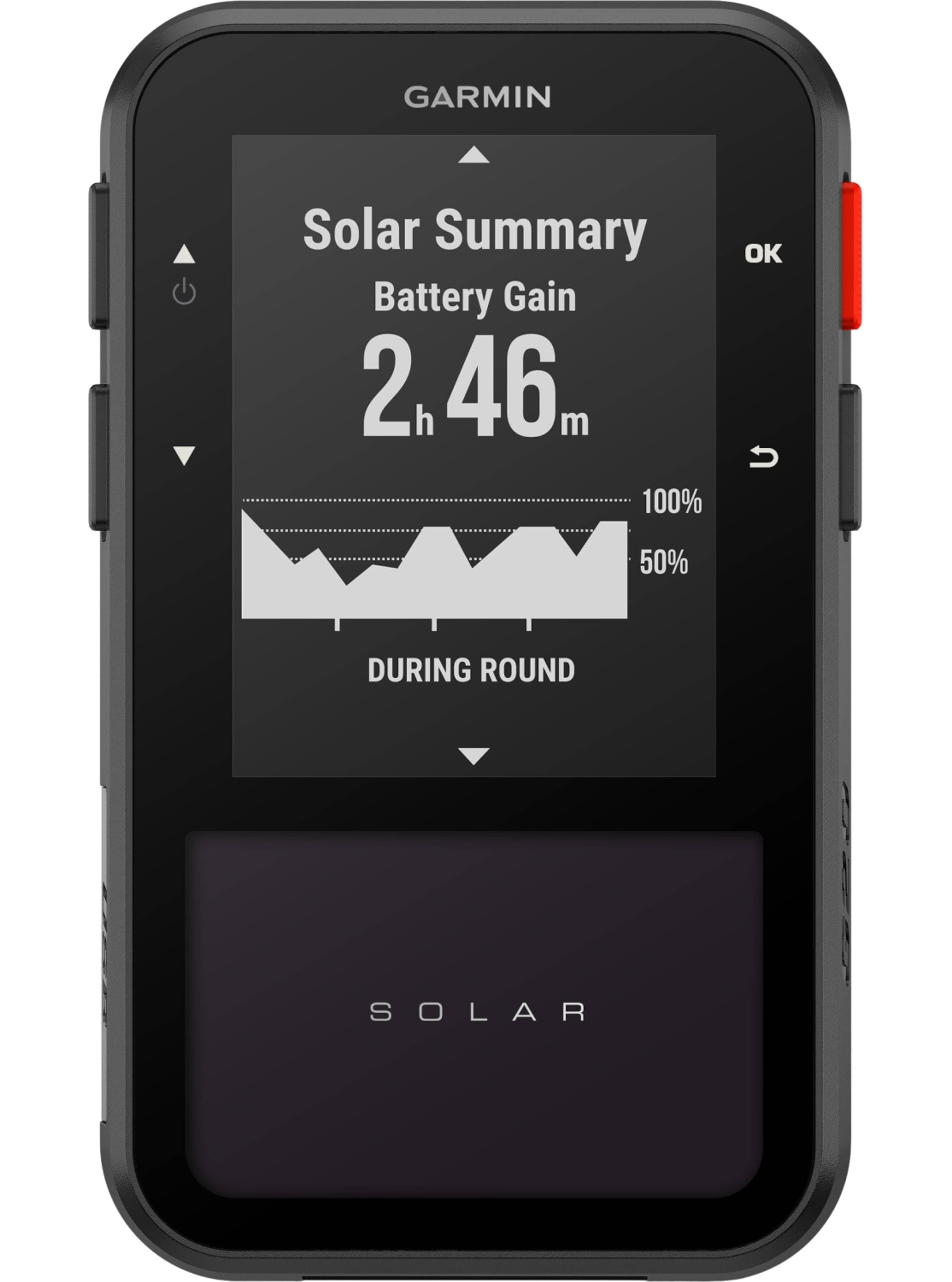 - Golf-Handgerät mit 2,2-Zoll (55,0 mm) Display und Solarladefunktion