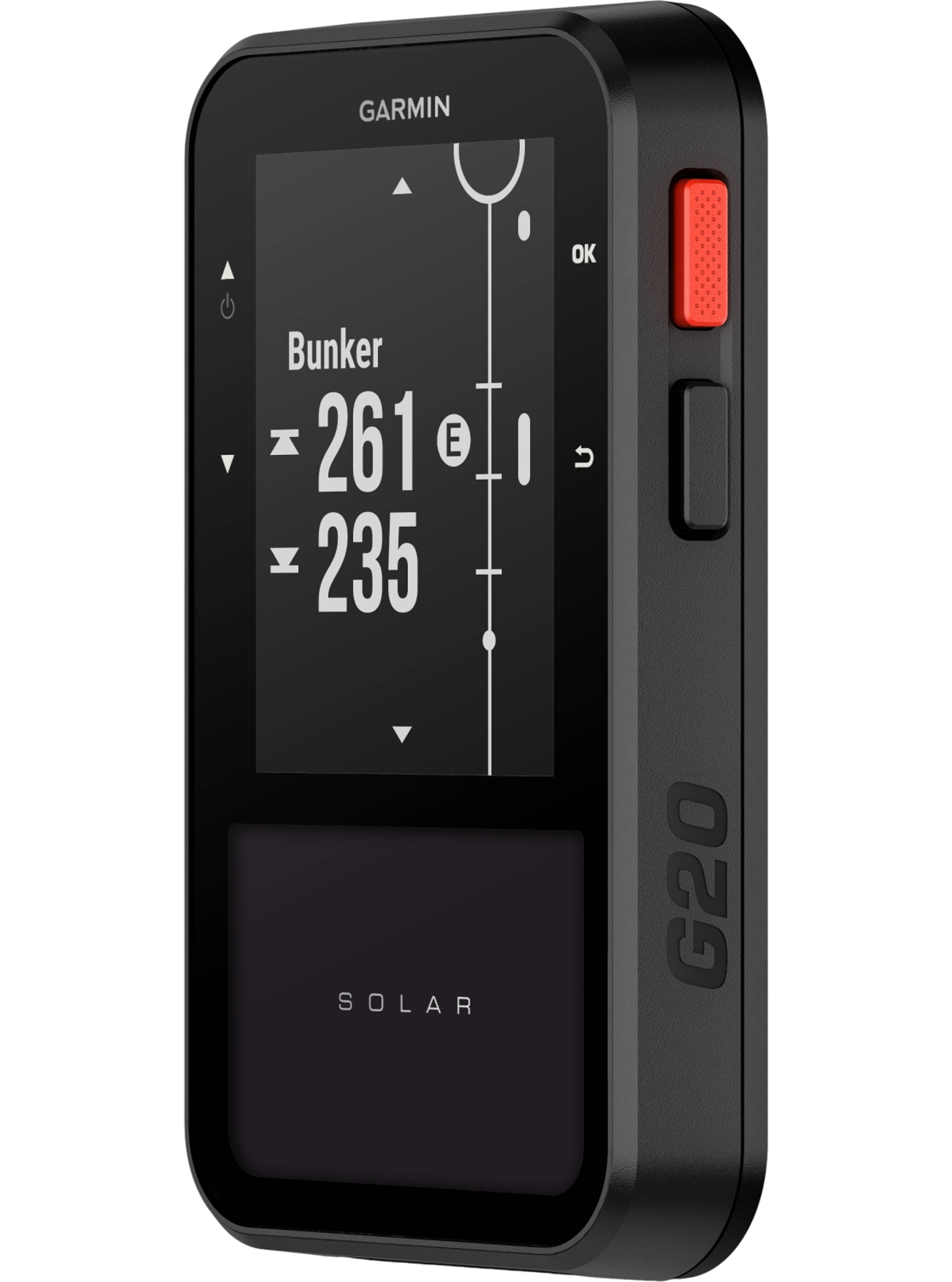 Mit dem Approach® G20 Solar für dein Golfspiel haben wir dein Spiel im Griff. Nimm mit dem Golf-Handgerät deine persönlichen Ziele in Angriff – mit einer unendlichen Akkulaufzeit dank Solarladung. Auf dem kontrastreichen 2,2-Zoll Display kannst du dir Entfernungen und Hindernisse zum Grün auf mehr als 43.000 weltweit vorinstallierten Golfplätzen anzeigen lassen. So kannst du für deinen nächsten Schlag die beste Entscheidung treffen. Koppele den Approach G20 mit der Garmin Golf App und sieh dir Windgeschwindigkeit sowie -richtungen an. Das Handgerät verfügt über eine integrierte magnetische Cart-Halterung für den einfachen Transport sowie einen mitgelieferten Gürtelclip. Dank der „Find My Garmin“ Funktion lässt sich dein Approach über die App jederzeit finden, falls du ihn zum Beispiel auf dem Golfplatz vergessen hast. Zusätzlich hast du die Möglichkeit, dir mittels Grosse Zahlen-Modus die Informationen noch größer darstellen zu lassen – inklusive der Daten zur automatischen Schlagverfolgung mit kompatiblen Approach CT10 Sensoren (separat erhältlich).