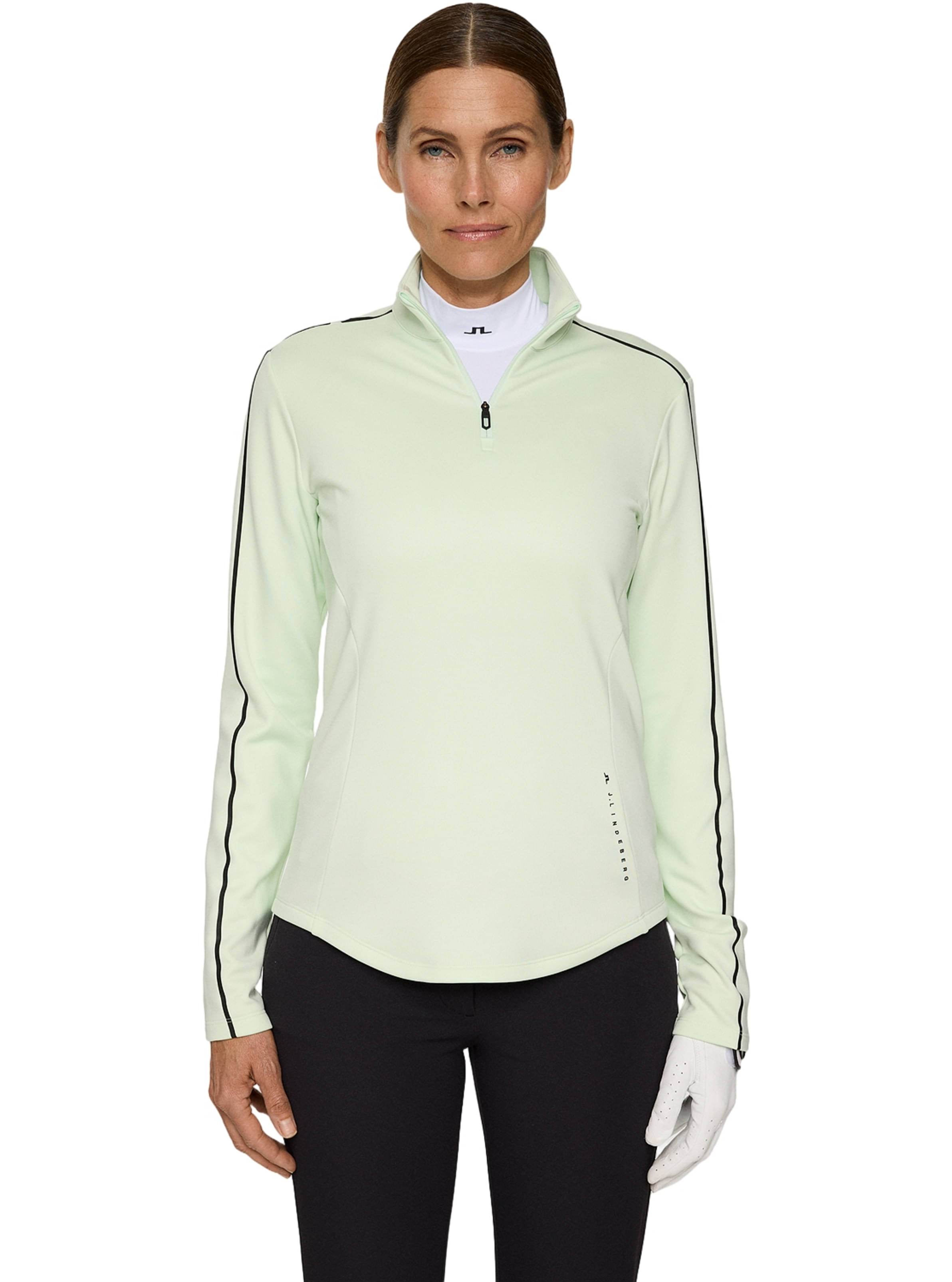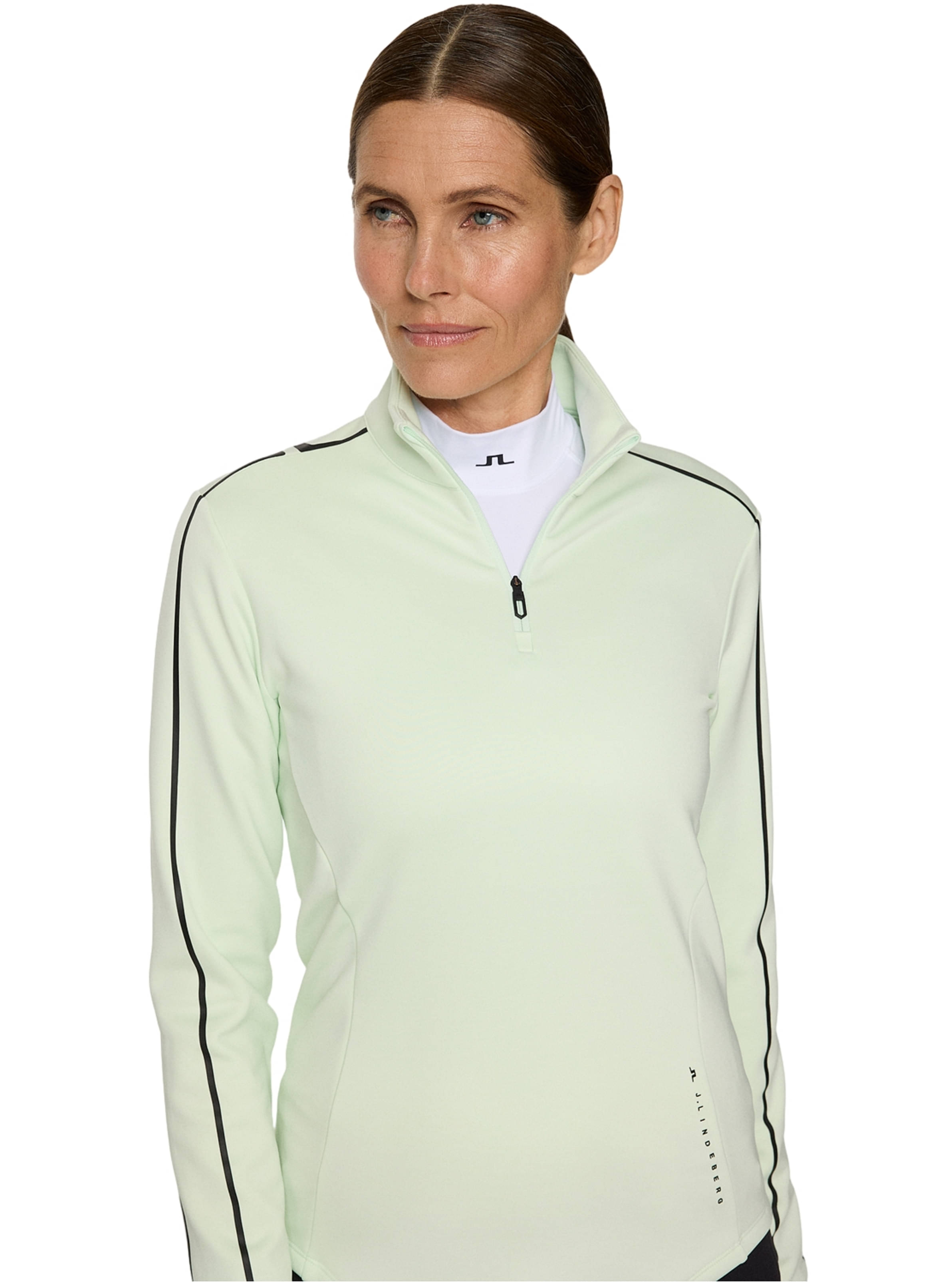 Das Nefe 1/4 Zip Layer von J.Lindeberg ist eine wärmende Zwischenschicht mit femininen Schnittlinien, die sowohl Stil als auch Funktionalität bietet.