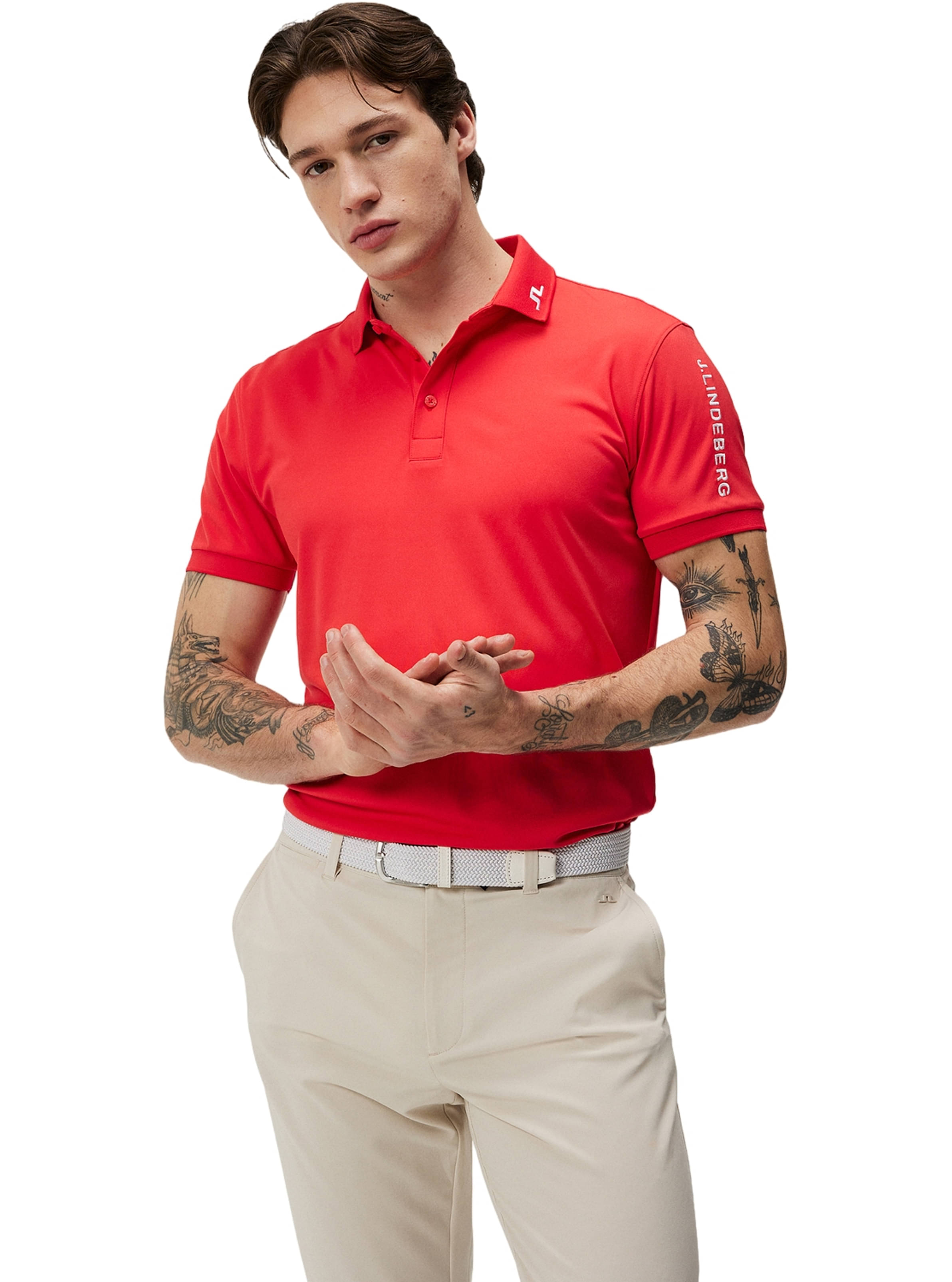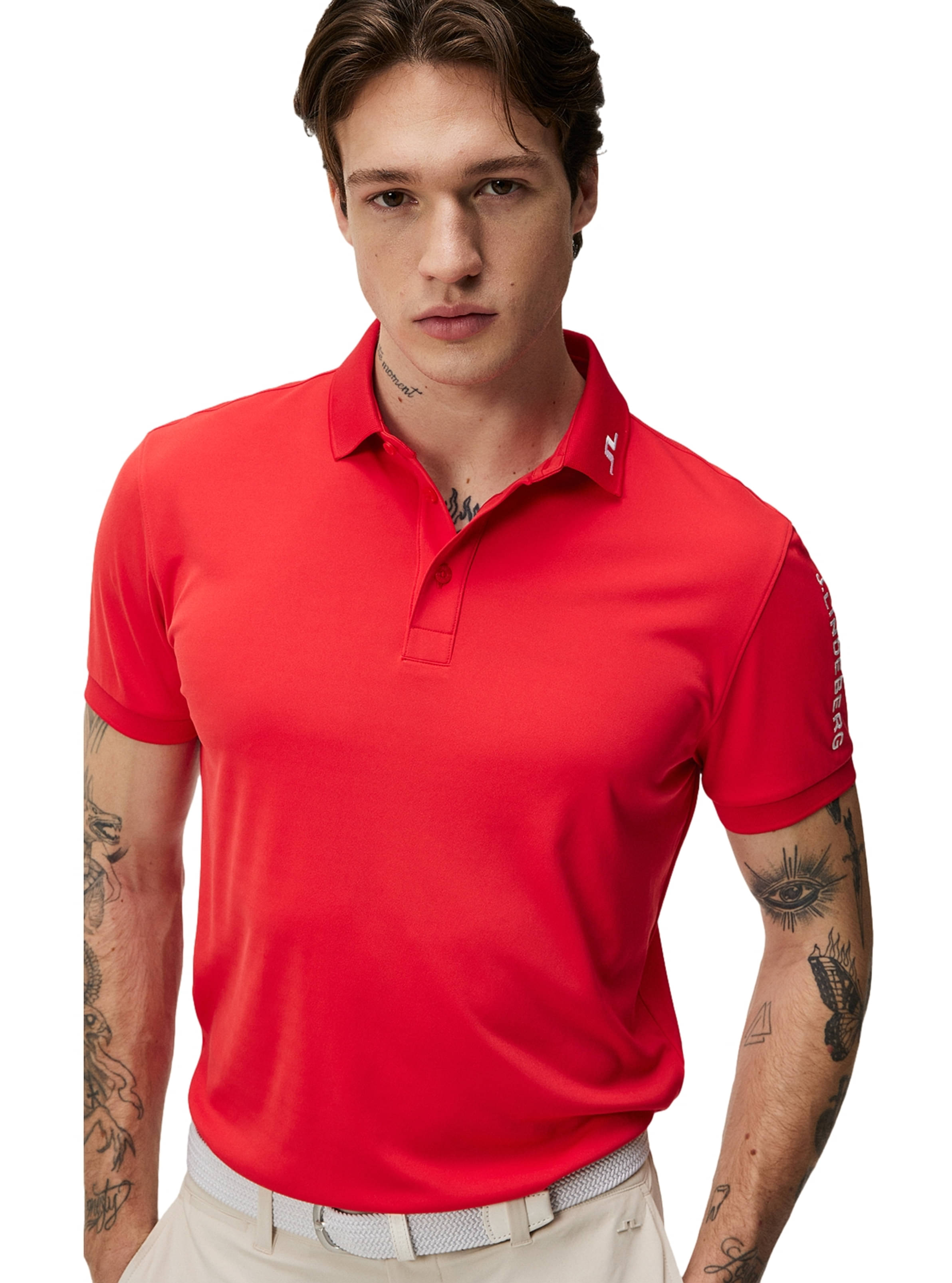 J. Lindeberg Bridge-Logo vorne am Kragen und am Nacken hinten