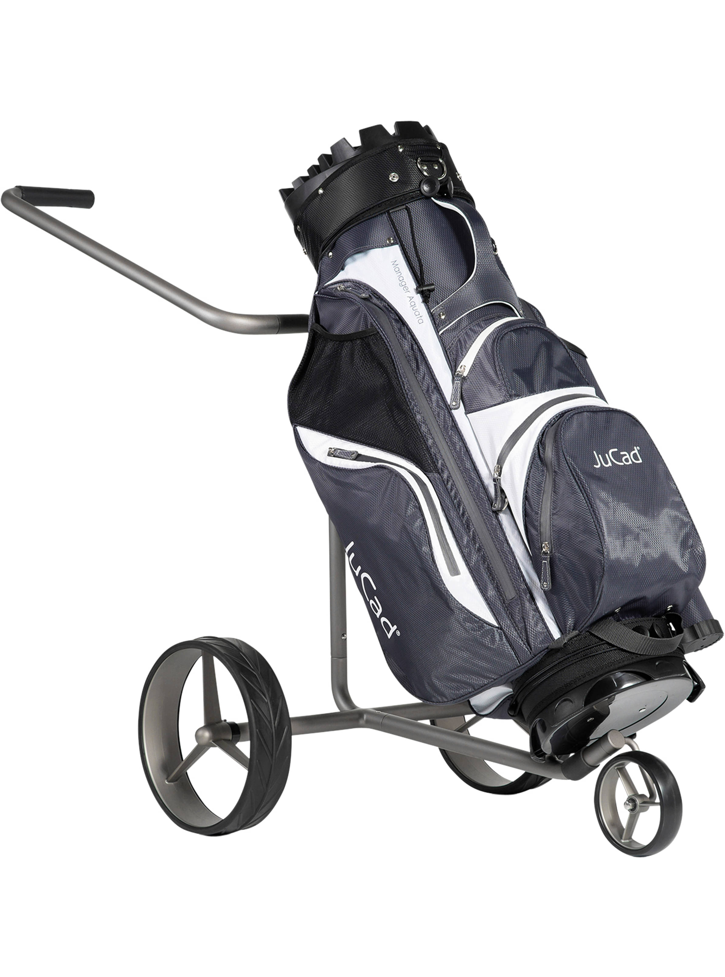Der Trolley Edition S 3-Rad von JuCad aus einer hochwertigen Aluminiumlegierung ist gleichermaßen robust und stabil. Für die Bags gibt es keine Gewichtsbegrenzung - und dank des höhenverstellbaren Griffs lässt sich der Trolley rückenschonend ziehen oder auch schieben. Zusammengefaltet passt der Trolley zusammen mit dem Golfbag ins Travelcover, was ihn zum idealen Reisebegleiter macht.