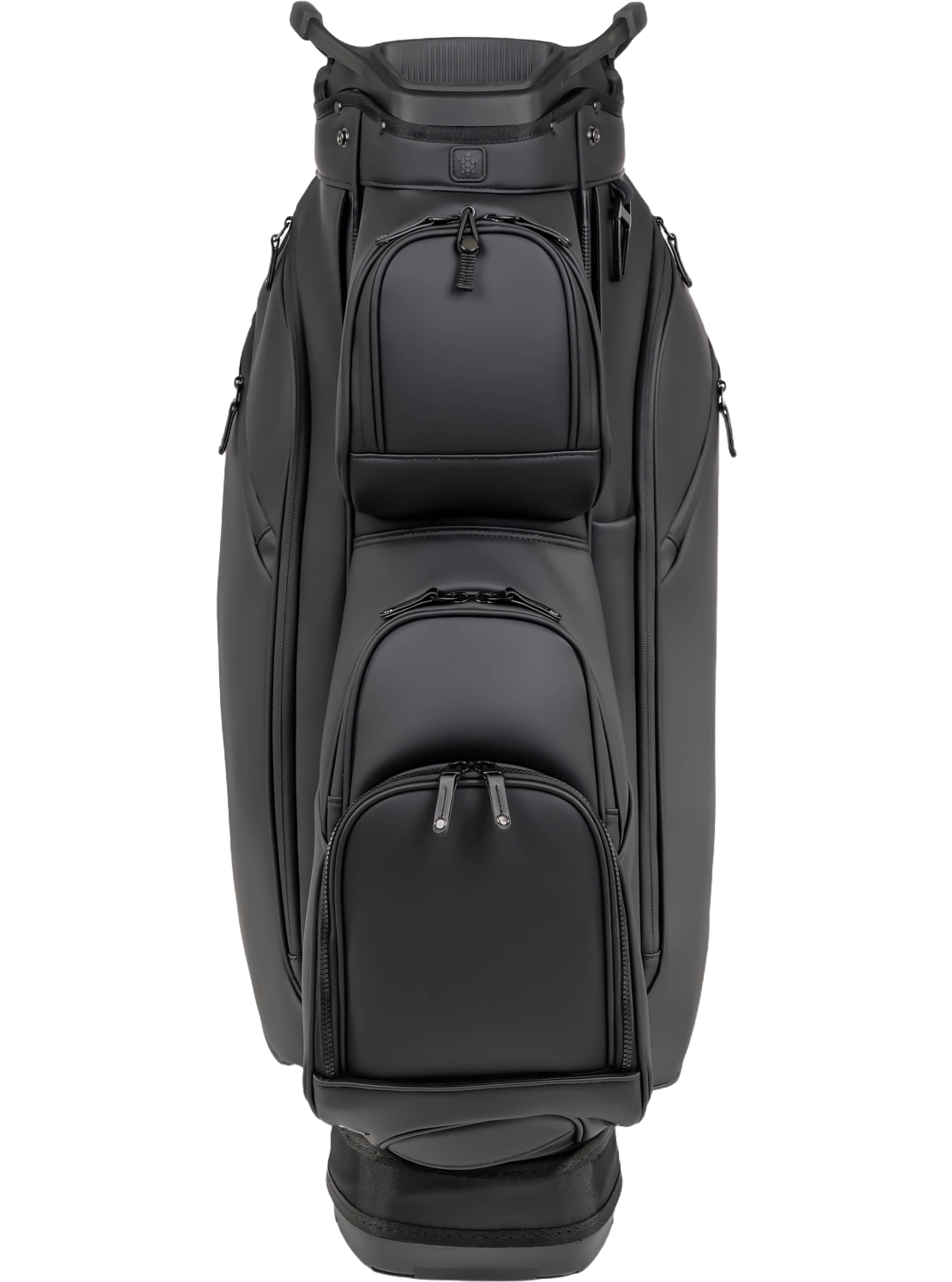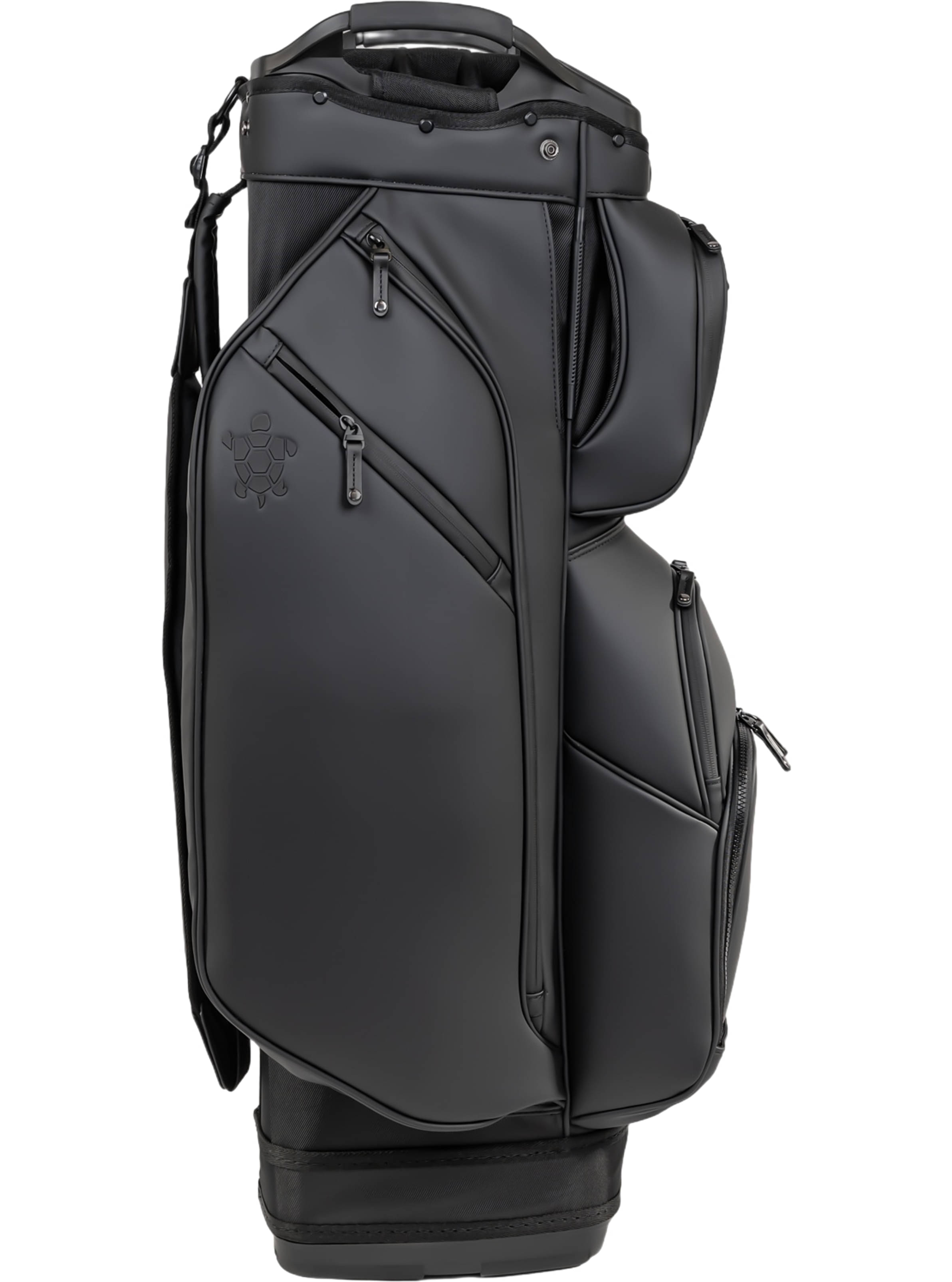 Der ultimative Begleiter für eine reibungslose Fahrt, das LUX Cart Bag bietet alle notwendigen Funktionen, verpackt in einem luxuriösen VEGAN-Lederpaket, das Ihre Aufmerksamkeit auf Ihre Schläge lenkt. Es verfügt über drei mit Samt ausgekleidete Luxusfächer für Wertsachen und Elektronik, die alle durch wasserdichte Reißverschlüsse geschützt sind, um sicherzustellen, dass der Inhalt wertvoll bleibt. Ein verstärkter Cart-Strap-Tunnel verschwindet hinter Ihren Taschen, zusammen mit einem überformten, gummierten Boden, der sicherstellt, dass Ihre Tasche auf dem Cart stabil bleibt und während des Spiels Zugang zu allen Taschen bietet. Die abnehmbare Frontdekorationstasche, der Einzelgurt und der Tragegriff, das Regenschirmsystem, die schnell zugängliche Elektroniktasche, der Handtuchhalter, der externe Stifthalter und die passende Regenhaube vervollständigen die Funktionalität dieses luxuriösen Meisterwerks.