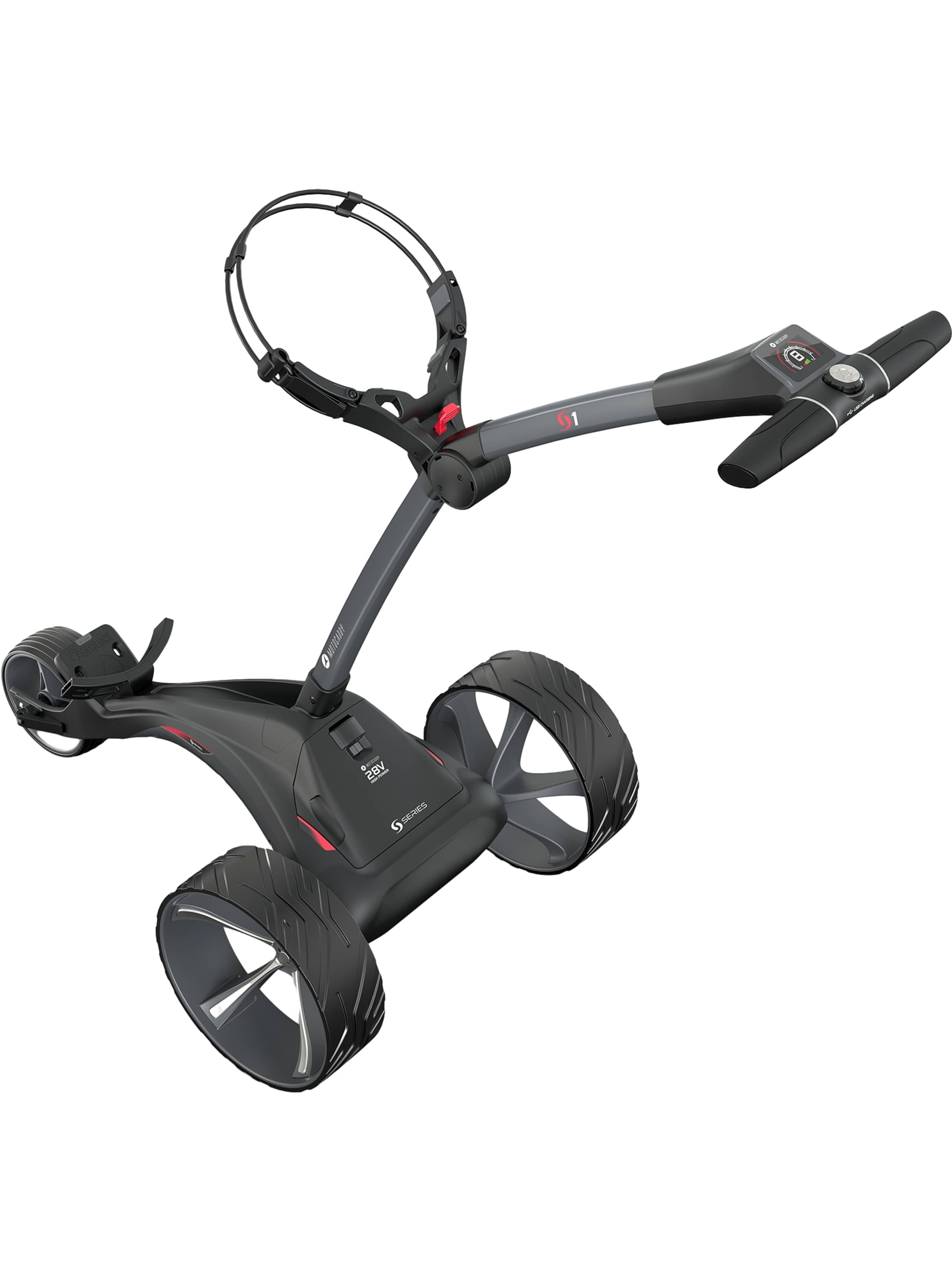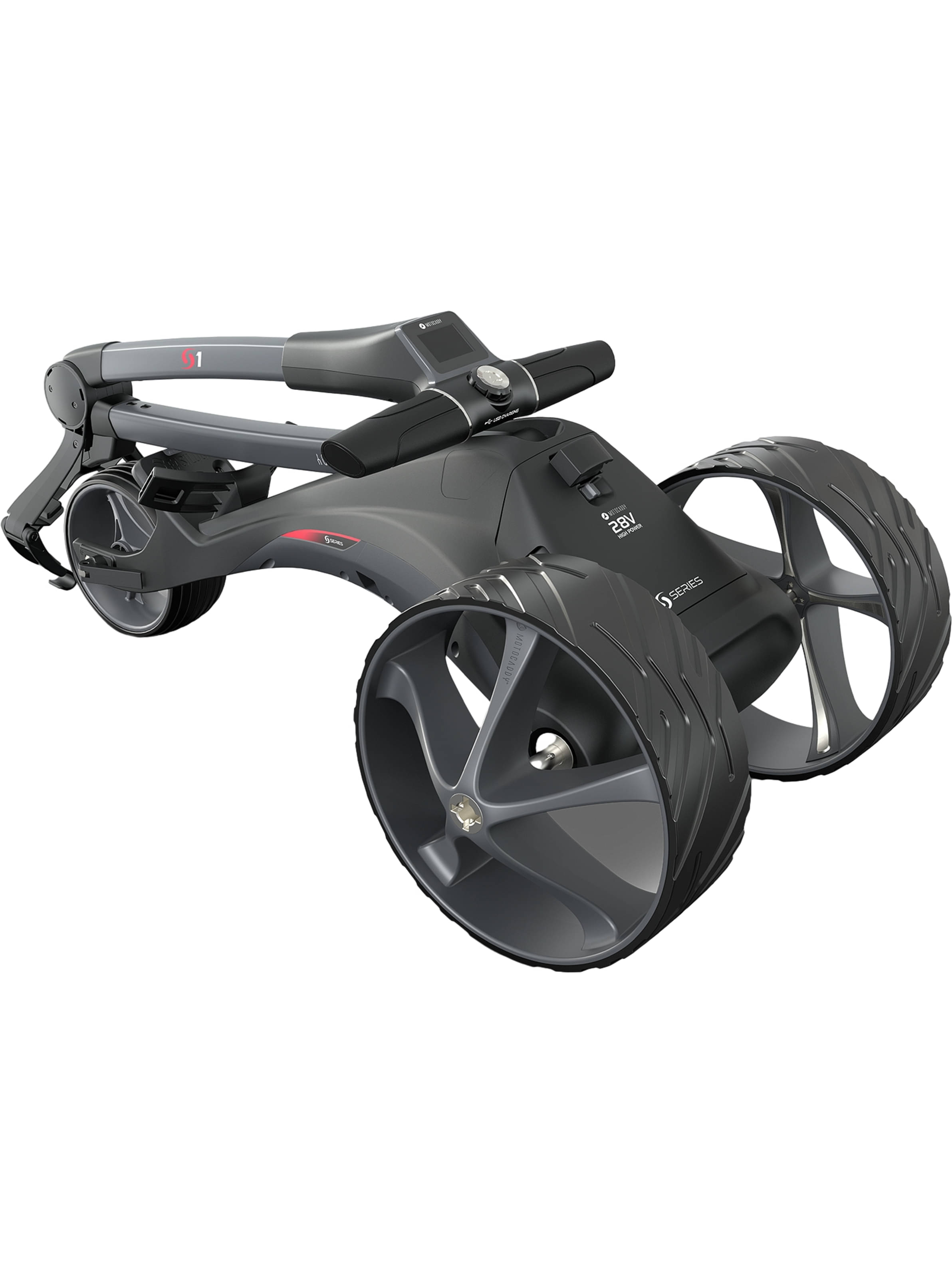 Mit neuer 28-Volt-Technologie kombiniert der neue Motocaddy S1 sportliches Design, beeindruckende Funktionalitäten und überzeugt mit einem leicht zu bedienenden “Ein-Schritt”-System zum platzsparenden Zusammenlegen. Weitere herausragende Merkmale sind die neue, kabellose Akku-Technologie mit automatischer Abschaltung sowie der Schnellladeanschluss, der das Laden im eingebauten Zustand ermöglicht.