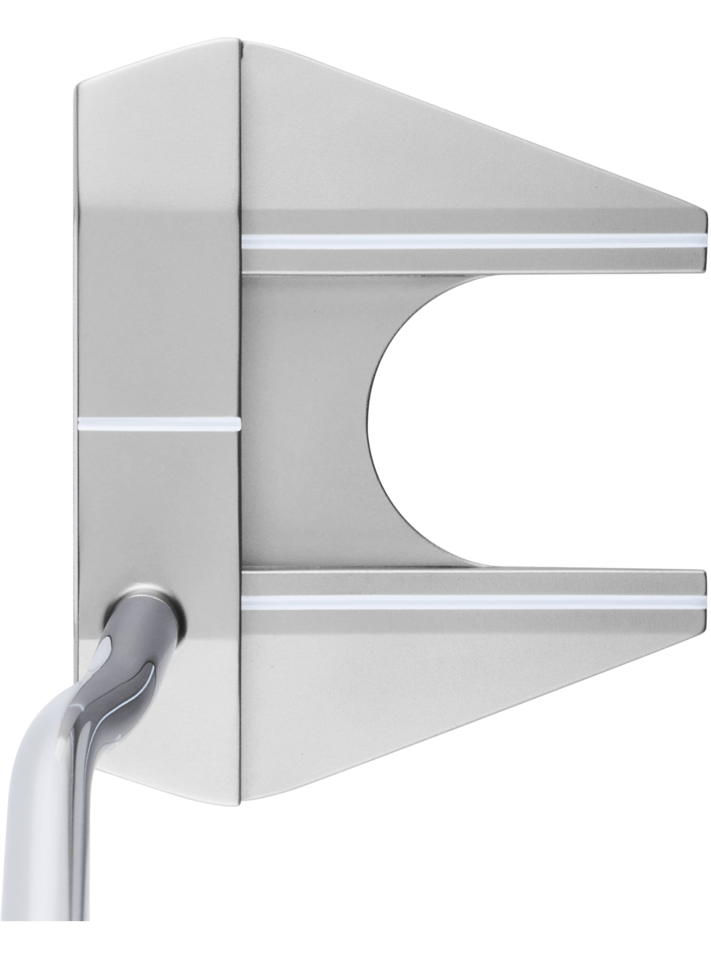 Diese Odyssey Ai-ONE Putter verfügen über unseren Ai-ONE Einsatz, der gleichmäßigere Ballgeschwindigkeiten liefert, selbst bei nicht mittig getroffenen Schlägen, und die Putts näher an das Loch bringt.