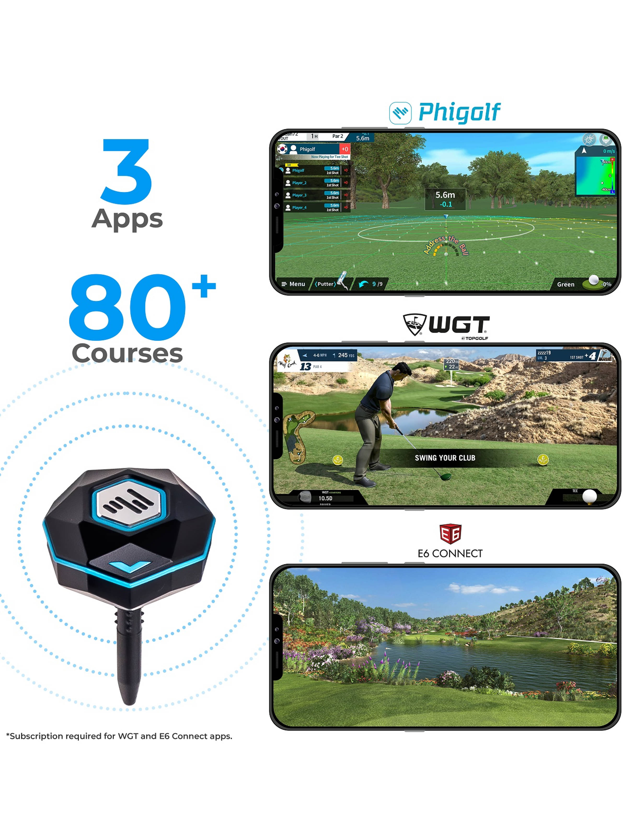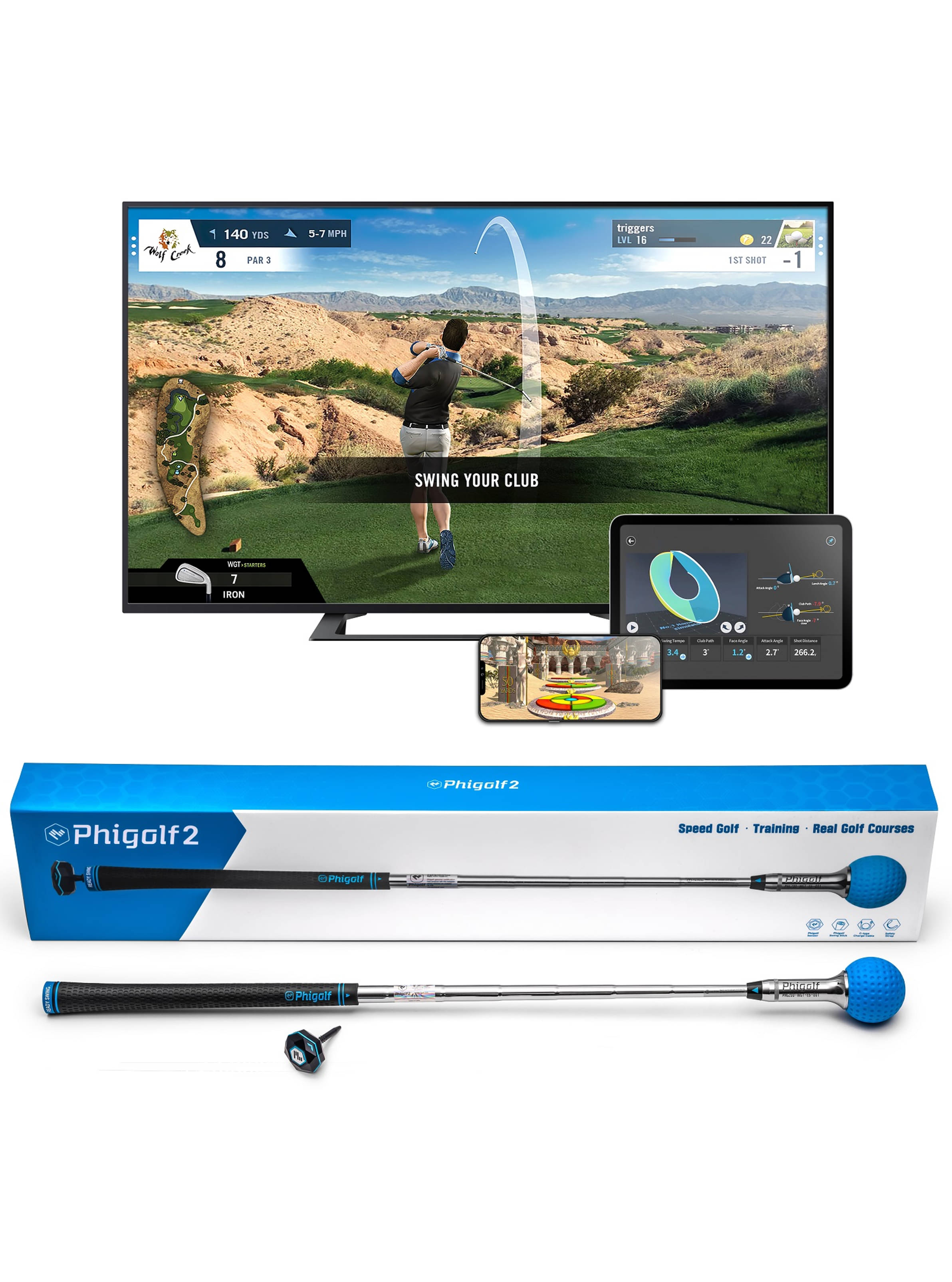 Verbesserte Genauigkeit und die Ergänzung mit Speed Golf machen Phigolf 2 zu einem sehr begehrten Produkt. Verbessern Sie Fitness und Genauigkeit von Ihrem eigenen Zuhause aus. Regnet es draußen? Kein Platz zum Üben? Auf Geschäftsreise? Phigolf hat Sie abgedeckt! Der tragbare Golf-Simulator bietet Ihnen die Möglichkeit, Ihren Schwung von überall auf der Welt zu verbessern. Erhalten Sie Echtzeit-Feedback zu Ihrem Schwung oder spielen Sie online mit Freunden und Familie. Phigolf's Kompatibilität mit den Topgolf WGT TruGolf E6 Plattformen bietet sofortigen Zugang zu über 80 Weltklasse-Golfplätzen von Ihrem eigenen Zuhause aus. Erhalten Sie eine sofortige Schwunganalyse mit Datenüberlagerung, damit Sie Ihren Golfswing Schuss für Schuss verbessern können. Vertraut von Golf-Profis und Branchenexperten hilft Phigolf Golfern auf der ganzen Welt, Ihr Spiel zu verbessern. Details und Eigenschaften auf einen Blick- Kompatibel mit den Apps WGT, Phigolf und E6 Connect