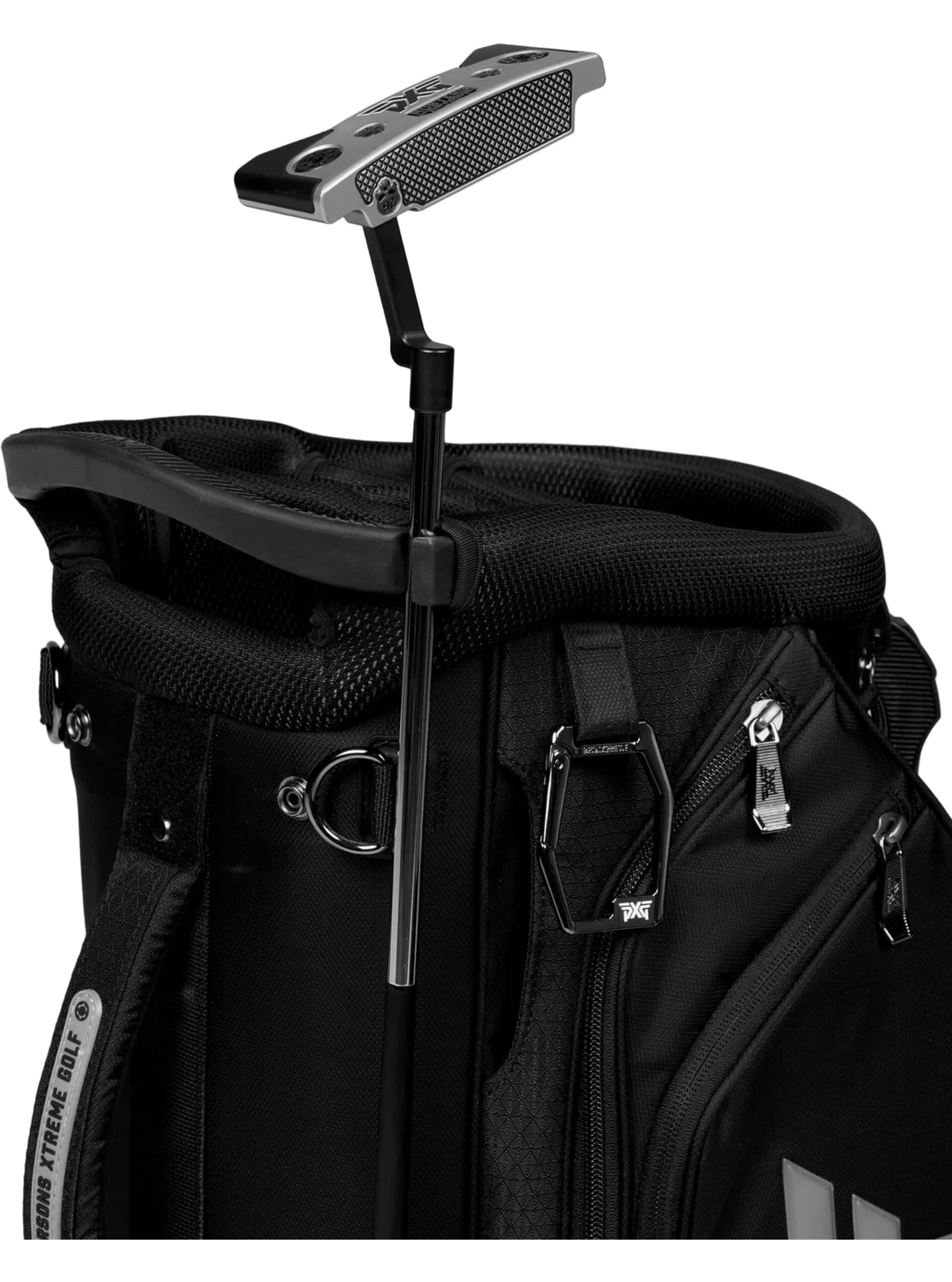 Die PXG Xtreme Hybrid Stand Bag vereint die Kapazität einer Cart-Tasche mit der Funktionalität einer Stand-Tasche. Ideal für Golfer, die sowohl zu Fuß als auch mit dem Cart unterwegs sind. Erhältlich in den Farben Schwarz/Weiß oder Schwarz/Grau, bietet diese Tasche ein 6-fach unterteiltes Top, 14 Taschen, magnetische Füße, eine magnetische Putterhalterung, eine gepolsterte Rückenpartie und vieles mehr.