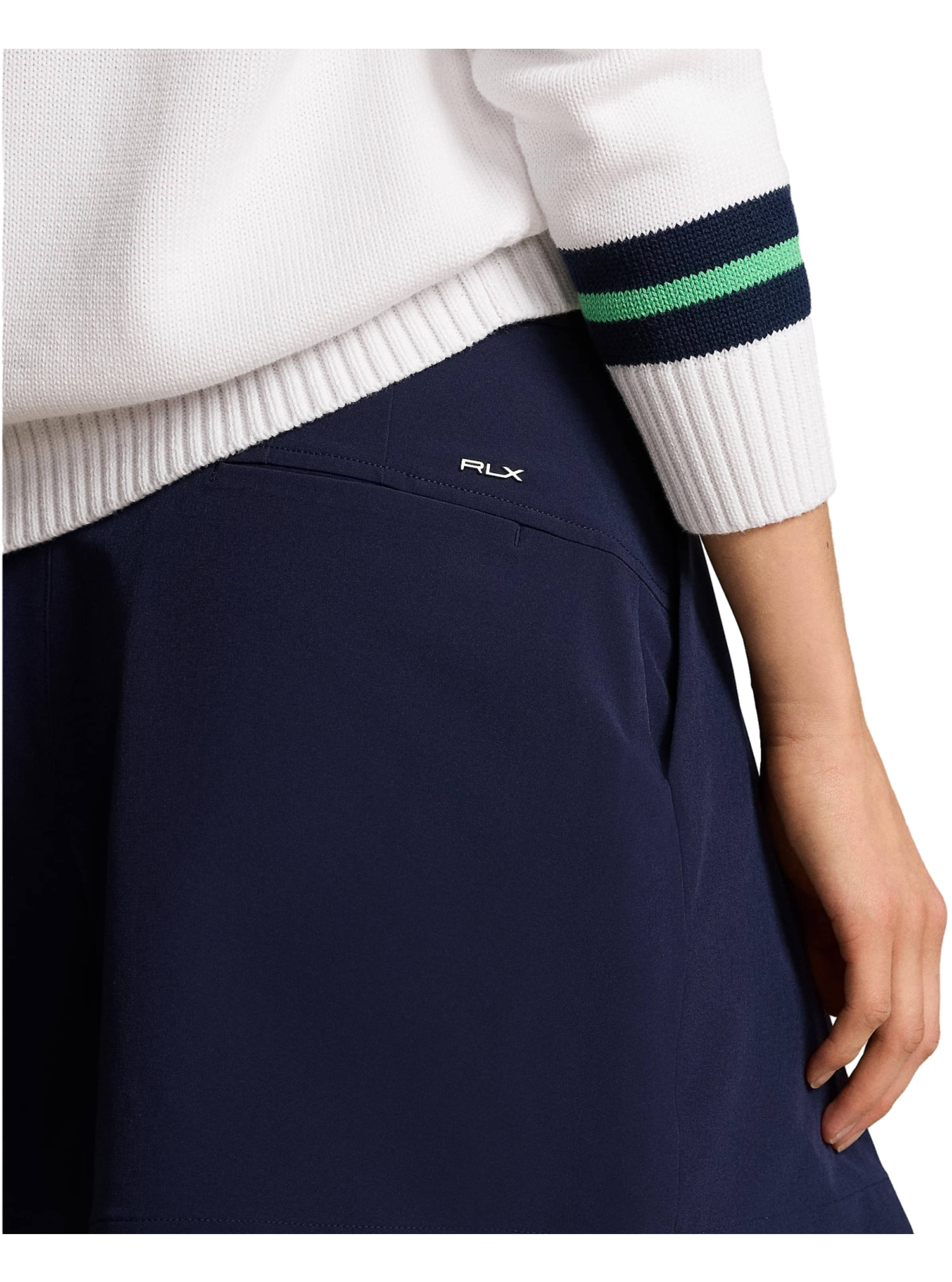 Details: Gürtelschlaufen, Reißverschluss mit Haken- und Ösenverschluss, elastischer "RLX" Bund am Rücken