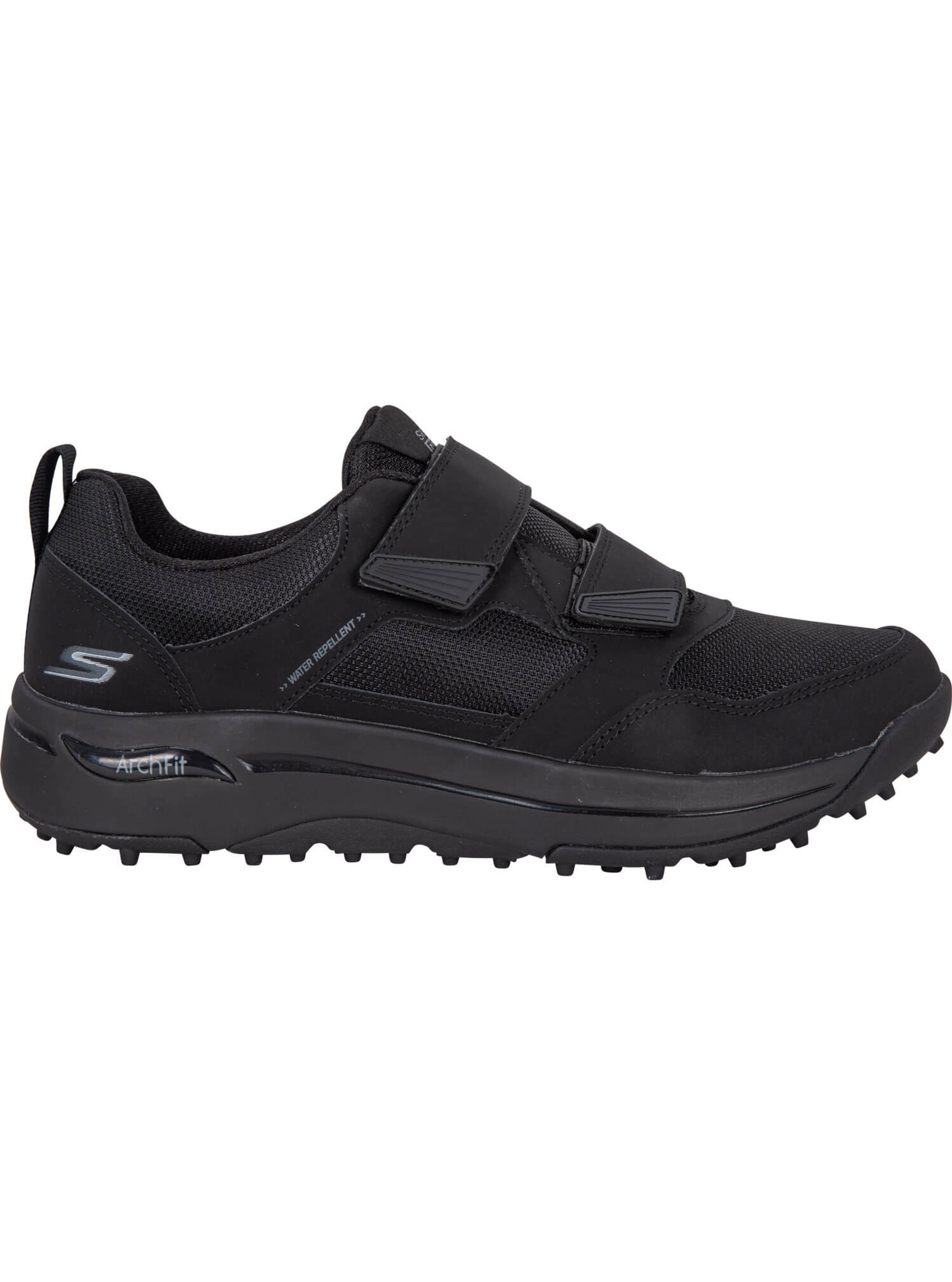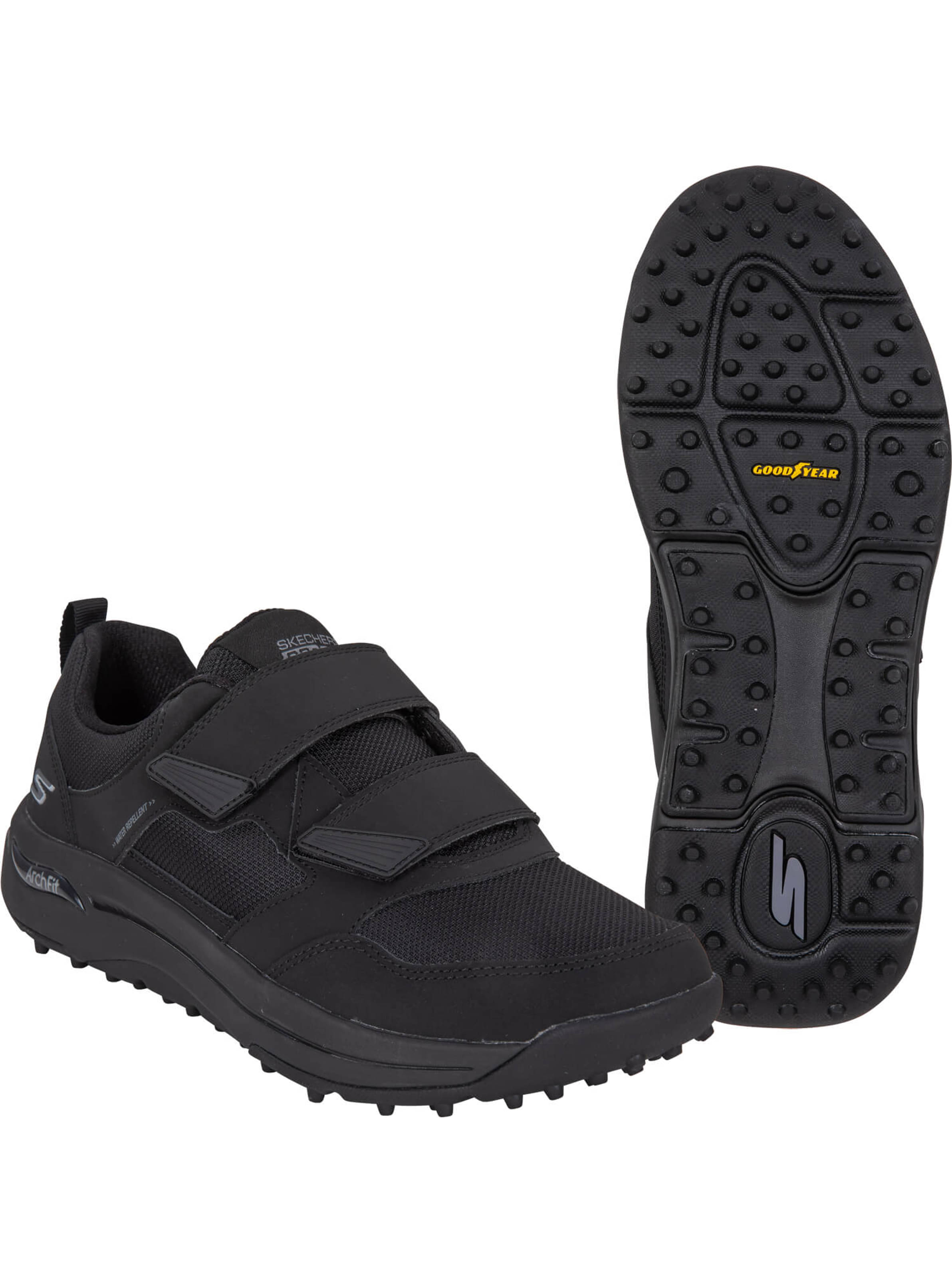 Der spikelose Skechers Arch Fit Herren Golfschuh liefert bequeme Unterstützung die ganze Runde lang. Das patentierte, von Fußspezialisten zertifizierte Skechers Fit Einlegesohlensystem stabilisiert den Mittelfuß, während sich die herausnehmbare Einlegesohle optimal Ihrem Fuß anpasst, Stöße abdämpft und für eine gute Gewichtsverteilung sorgt. Das Design des Schuhs wurde von Podologen entworfen und basiert auf 20 Jahren Erfahrung sowie 120.000 ungewichteten Fußscans. Dank Klettverschluss mit zwei Riemen lässt sich der Schuh für eine präzise Passform optimal an den Fuß anpassen. Für zuverlässige Traktion, Stabilität und Strapazierfähigkeit sorgt die Goodyear Performance-Laufsohle aus Gummi.