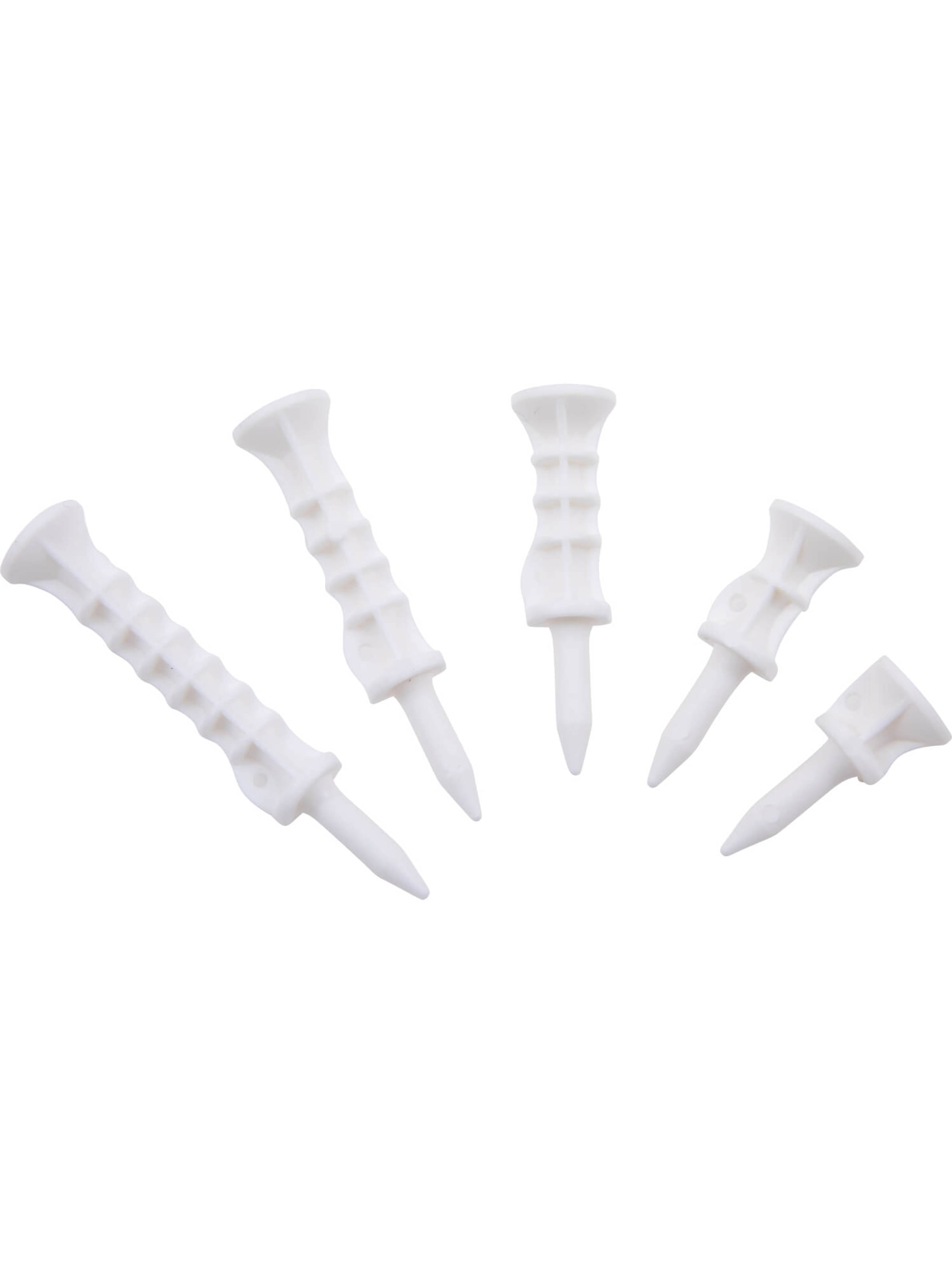 Das Tee-Set von Spine Tee mit verschieden langen Tees ermöglicht reproduzierbare Abschlaghöhen und für jeden Schläger die ideale Höhe - ob für Driver oder Eisen. Als Besonderheit verfügen die Tees über eine kleine Öffnung oberhalb des Dorns, durch die zwei Tees mithilfe der beiliegenden Schnur miteinander verbunden werden können. So wird verhindert, dass die Tees beim Schlagen wegfliegen. Das erspart Ihnen nicht nur die lästige Suche, sondern verhindert auch, dass Sie auf dieser Suche versehentlich in die Schlagzone anderer Golfer laufen.