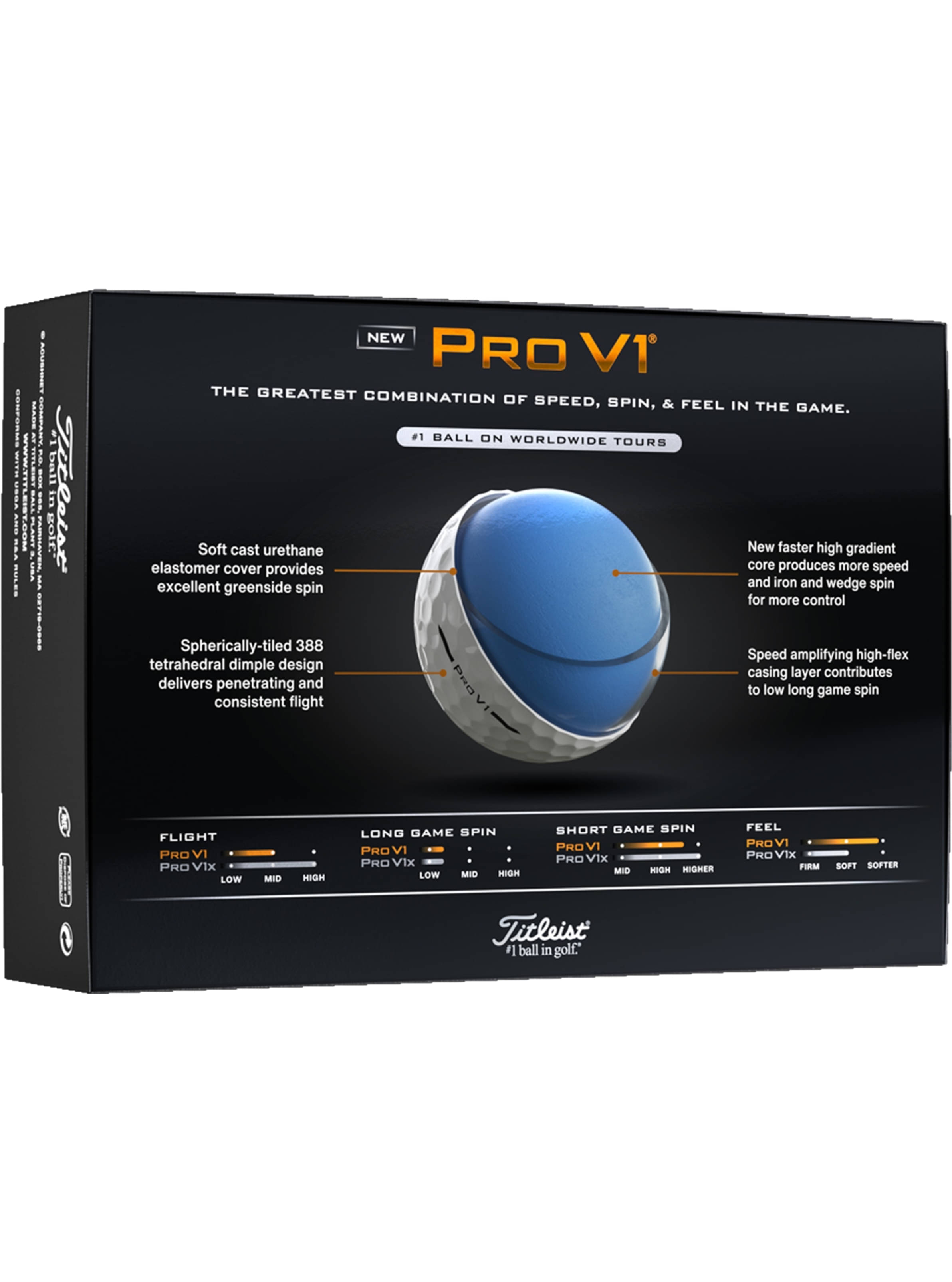 Was ist neu: Der 2025 Pro V1 erzeugt mehr Geschwindigkeit vom Tee, mehr Kontrolle mit Eisen, mehr Spin mit Wedges und mehr Möglichkeiten, niedrigere Scores zu erzielen.