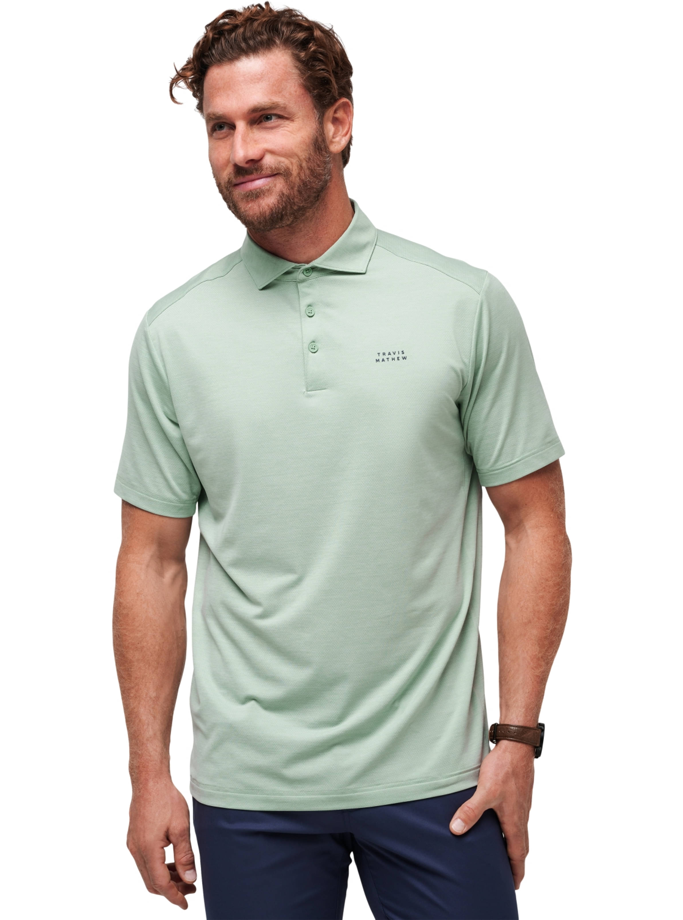 TravisMathew-Wortmarke auf der linken Brust: Verleiht dem Poloshirt einen stilvollen Akzent.