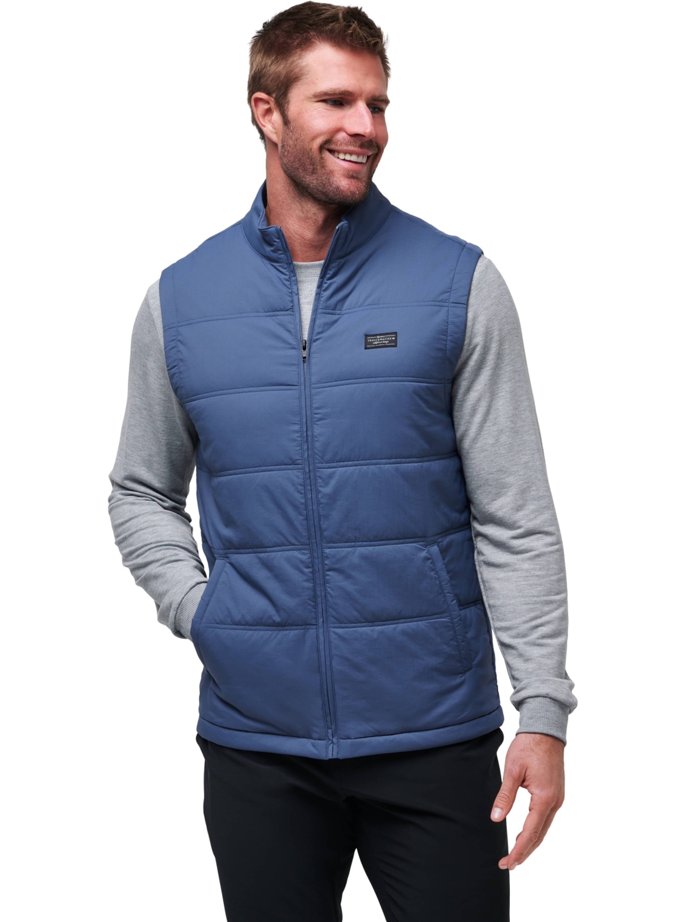 Travis Mathew-Logo auf der linken Brust: Verleiht der Weste einen stilvollen Akzent.