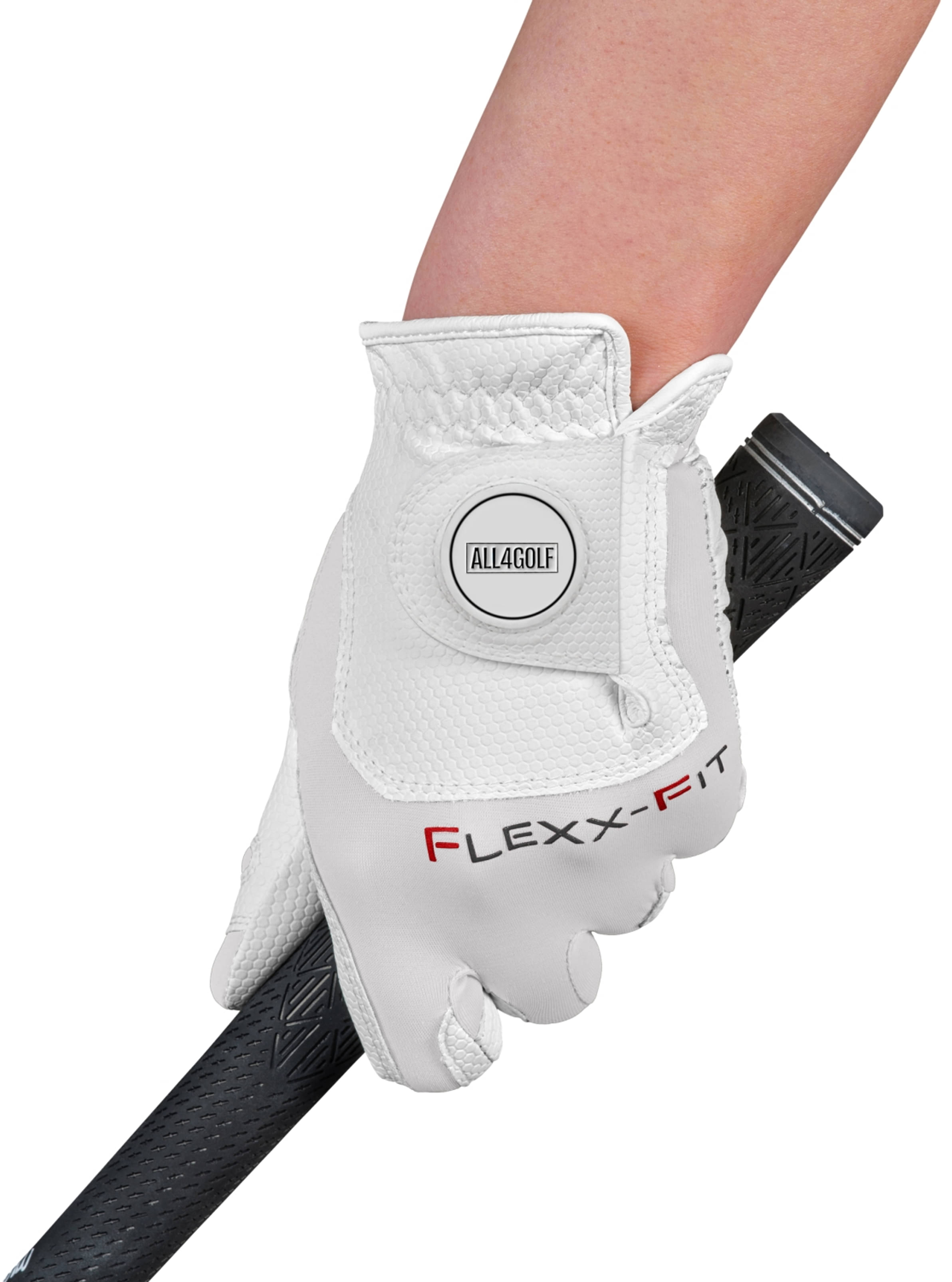 Mit All4Golf-Logo auf dem Handrücken.